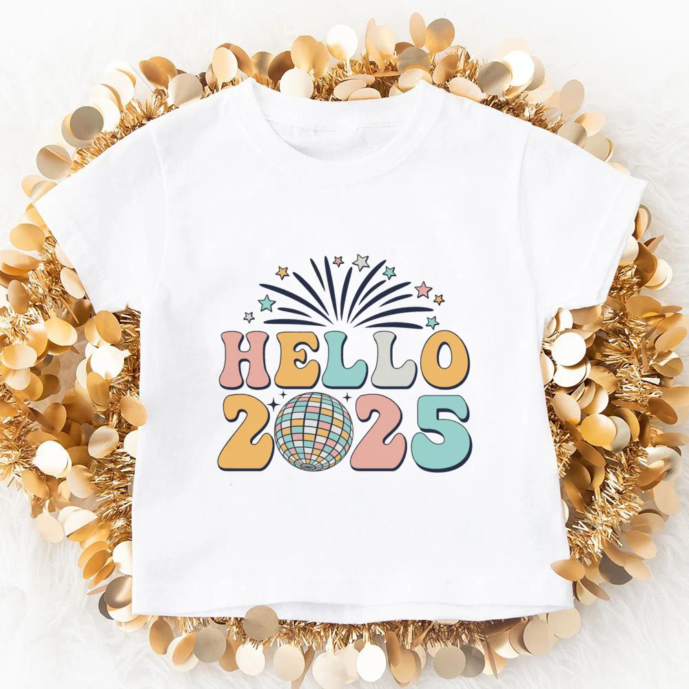 Comprar Hola 2025, Feliz Año Nuevo, ropa a juego para la familia, fiesta de Año Nuevo, papá, mamá, niños, camisas, pelele para bebé, traje de vacaciones familiar