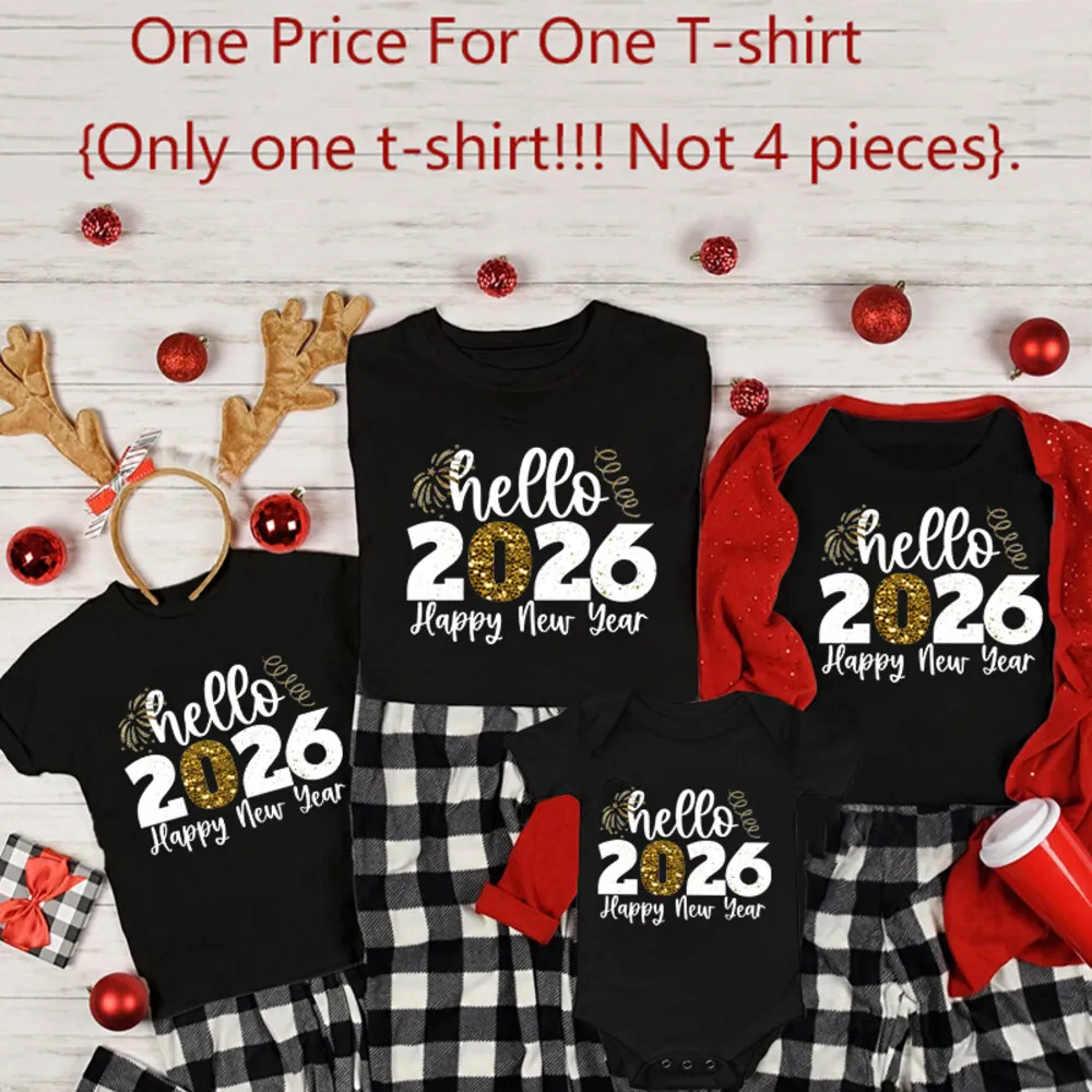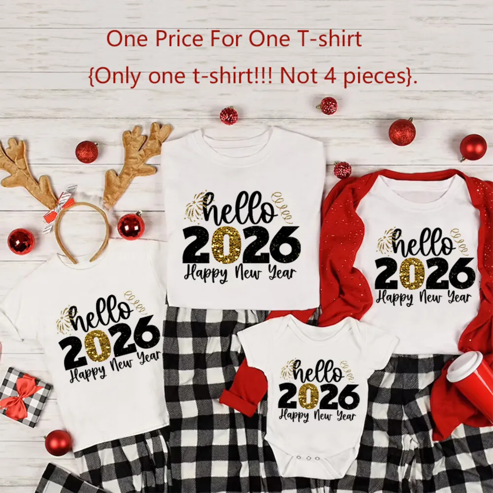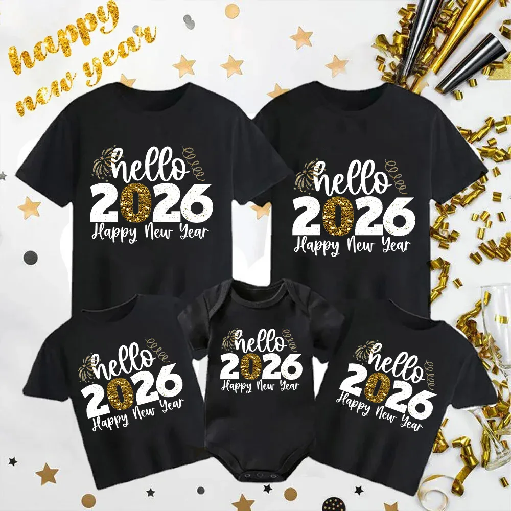 Hola 2026 camisas a juego para la familia Feliz Año Nuevo papá mamá e hija hijo camiseta bebé mameluco aspecto familiar ropa de Año Nuevo