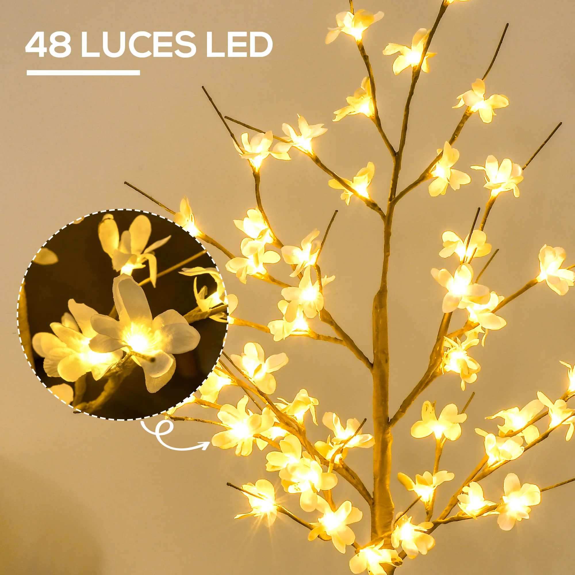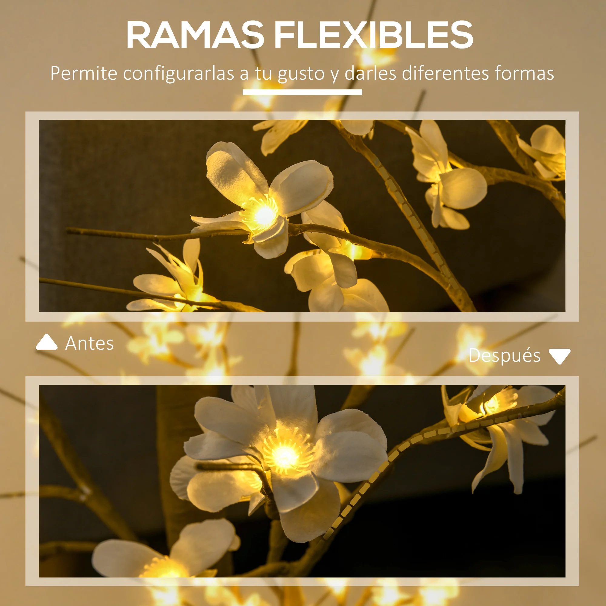 Añade calidez a cualquier espacio de tu hogar con este árbol de HOMCOM. Simulando un cerezo real, esta lámpara de cerezo artificial cuenta con 48 luces LED que ofrecen una luz acogedora y una sensación de bienestar allí donde lo coloques. Es perfecto para decorarlo a tu gusto y transformarlo en una pieza única y exclusiva. Convierte tu hogar en un lugar especial y agradable con esta original decoración. El complemento ideal para tu hogar, eventos, fiestas o para tener en el porche cubierto.