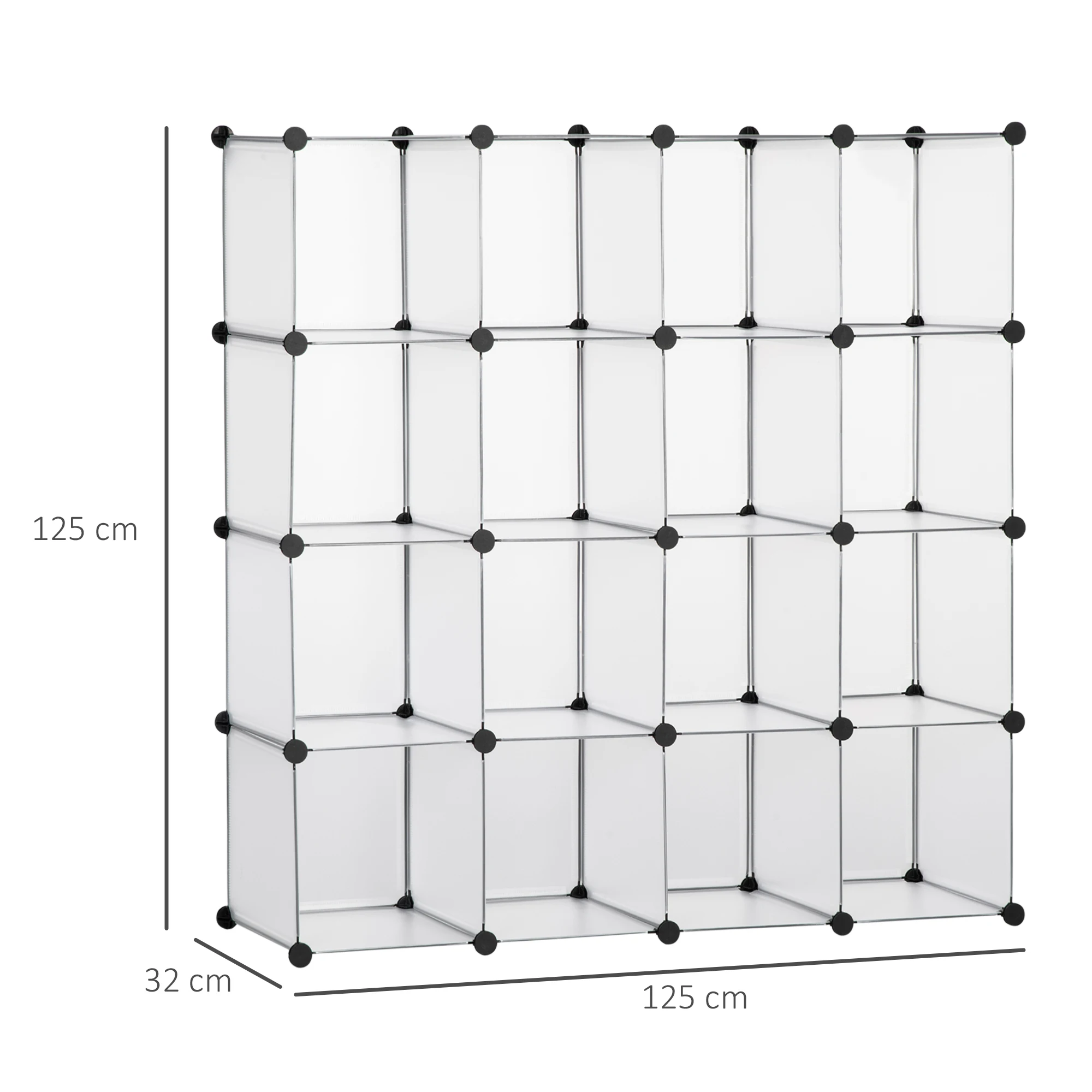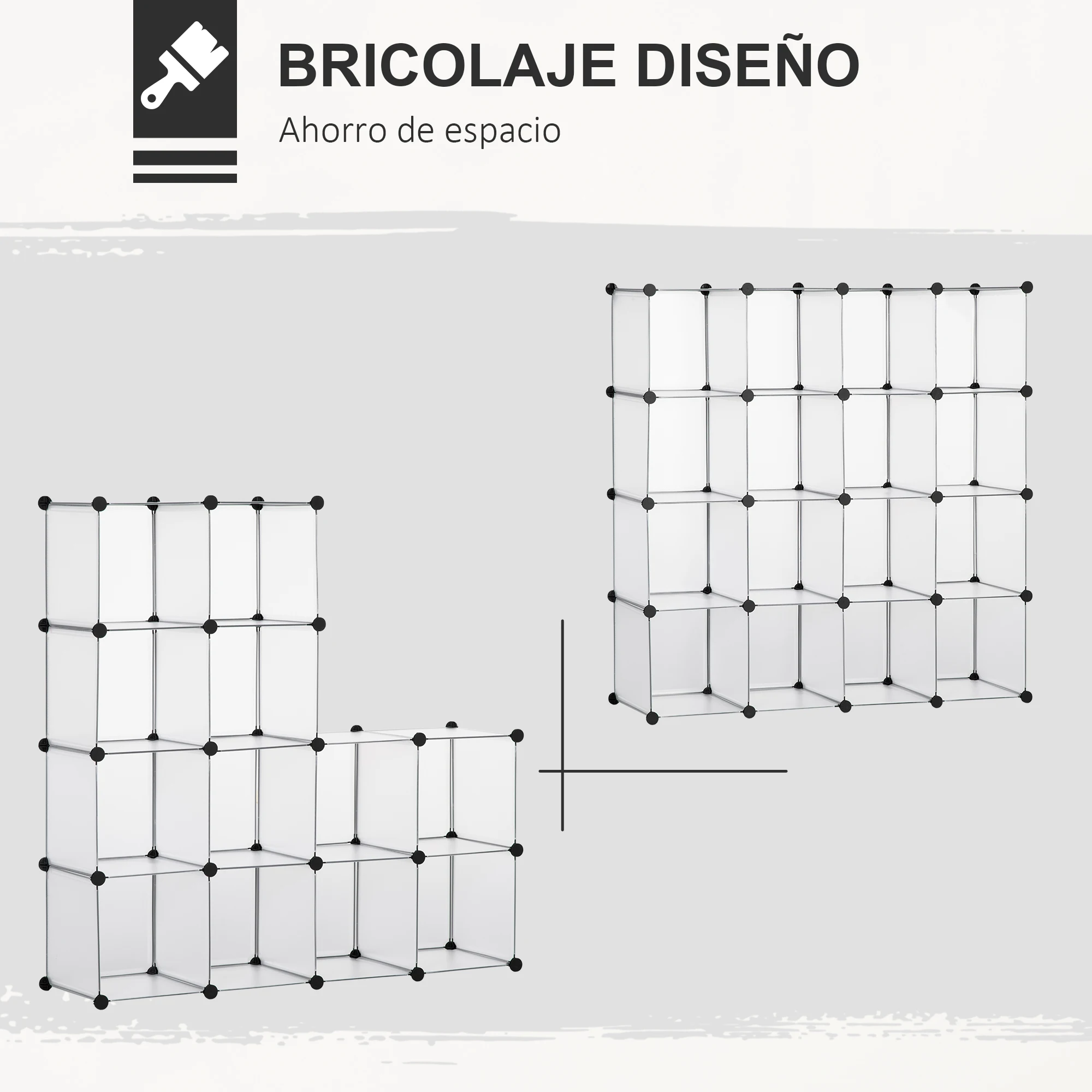 Haz un orden eficiente en casa con este armario modular de plástico HOMCOM. Los cubos pueden apilarse a tu elección, lo que los hace ideales para adaptarse sin problemas a espacios de cualquier tamaño y forma. Los 16 cubos del armario modular ofrecen mucho espacio para guardar juguetes, ropa, zapatos y otros objetos para mantener la casa ordenada y organizada. ¡Un gran accesorio para tu hogar!