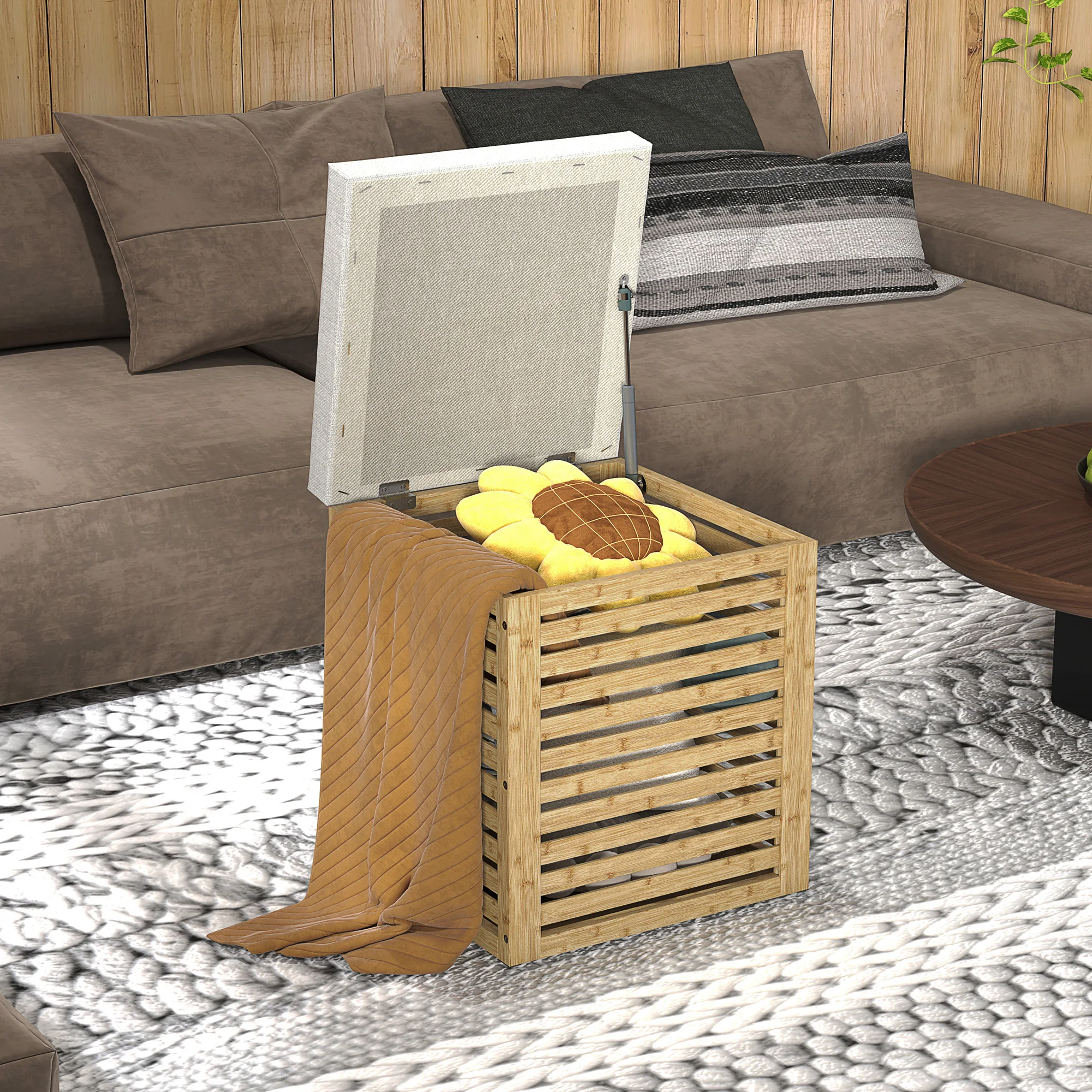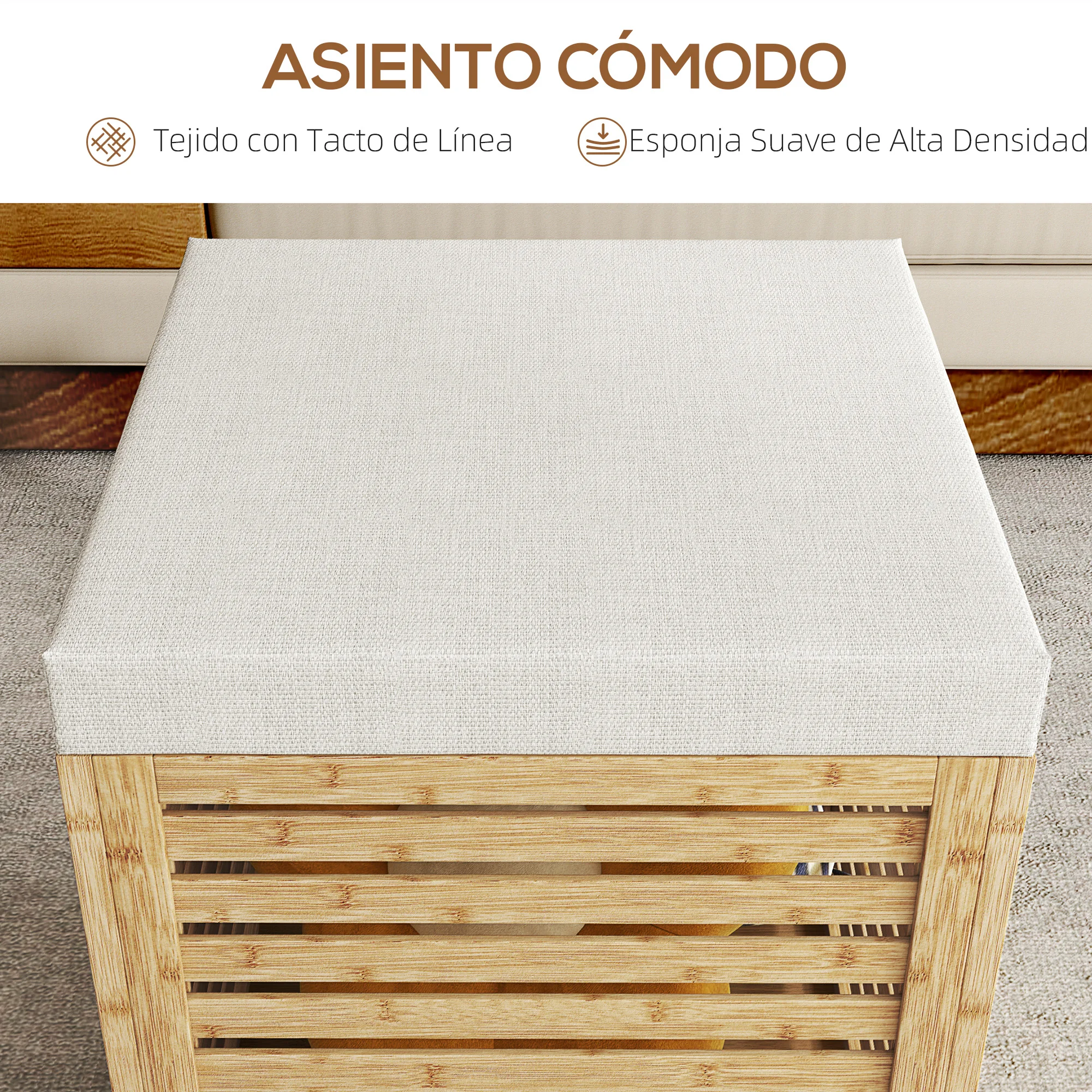 Este baúl de almacenamiento de HOMCOM ofrece una capacidad de 54,76L para mantener todo en orden. Su tapa con amortiguadores de gas se abre fácilmente, proporcionando acceso rápido a lo almacenado. El diseño en bambú favorece la ventilación, y su tapizado en lino sintético le aporta un toque moderno. Con un asiento de espuma de alta densidad, es ideal para cualquier habitación, ofreciendo tanto almacenamiento como comodidad.