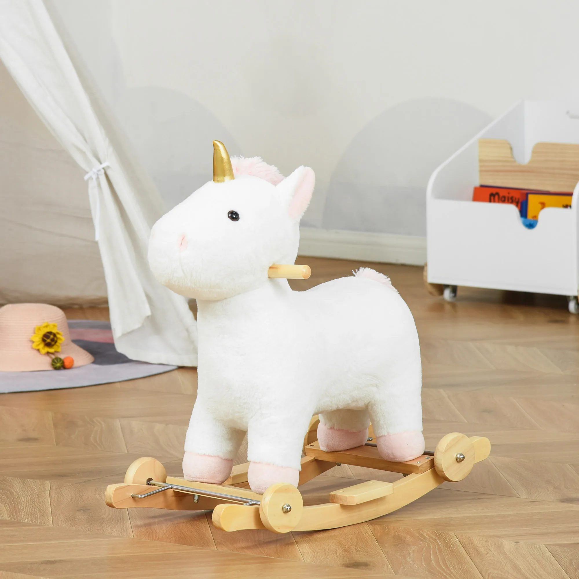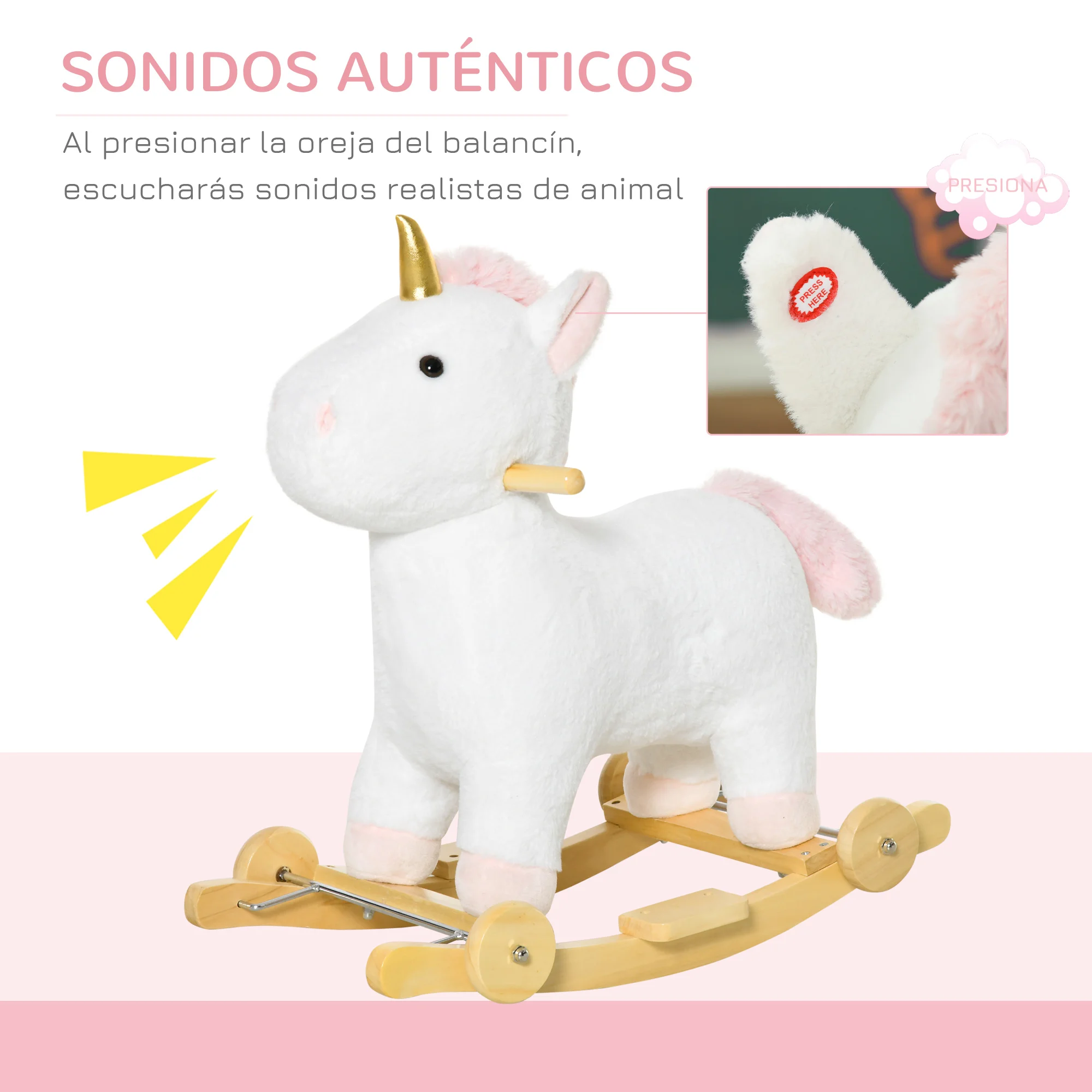 Comprar HOMCOM Caballito Balancín Infantil en Forma de Unicornio para Niños de +3 Años Balancín de Felpa 2 en 1 Ruedas Sonido 63x38x63cm