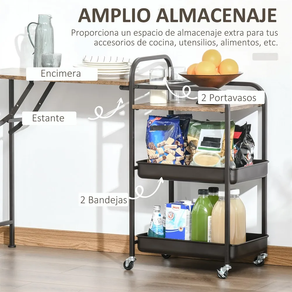 - Una opción eficaz si buscas un carrito de cocina con una encimera de trabajo adicional