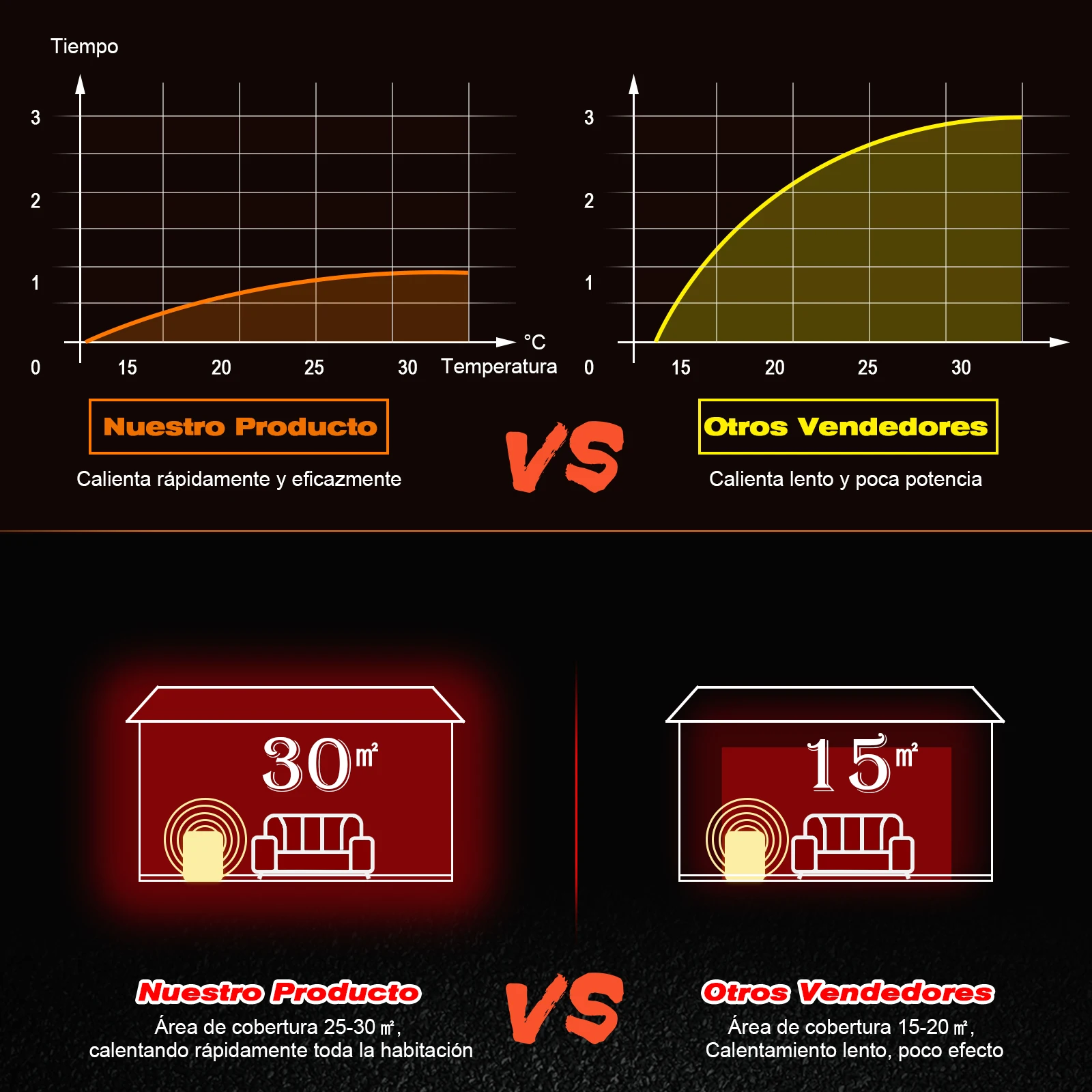 • Incluye lámpara halógena que crea un efecto de leña. Se puede encender y apagar por separado la función de calefacción
