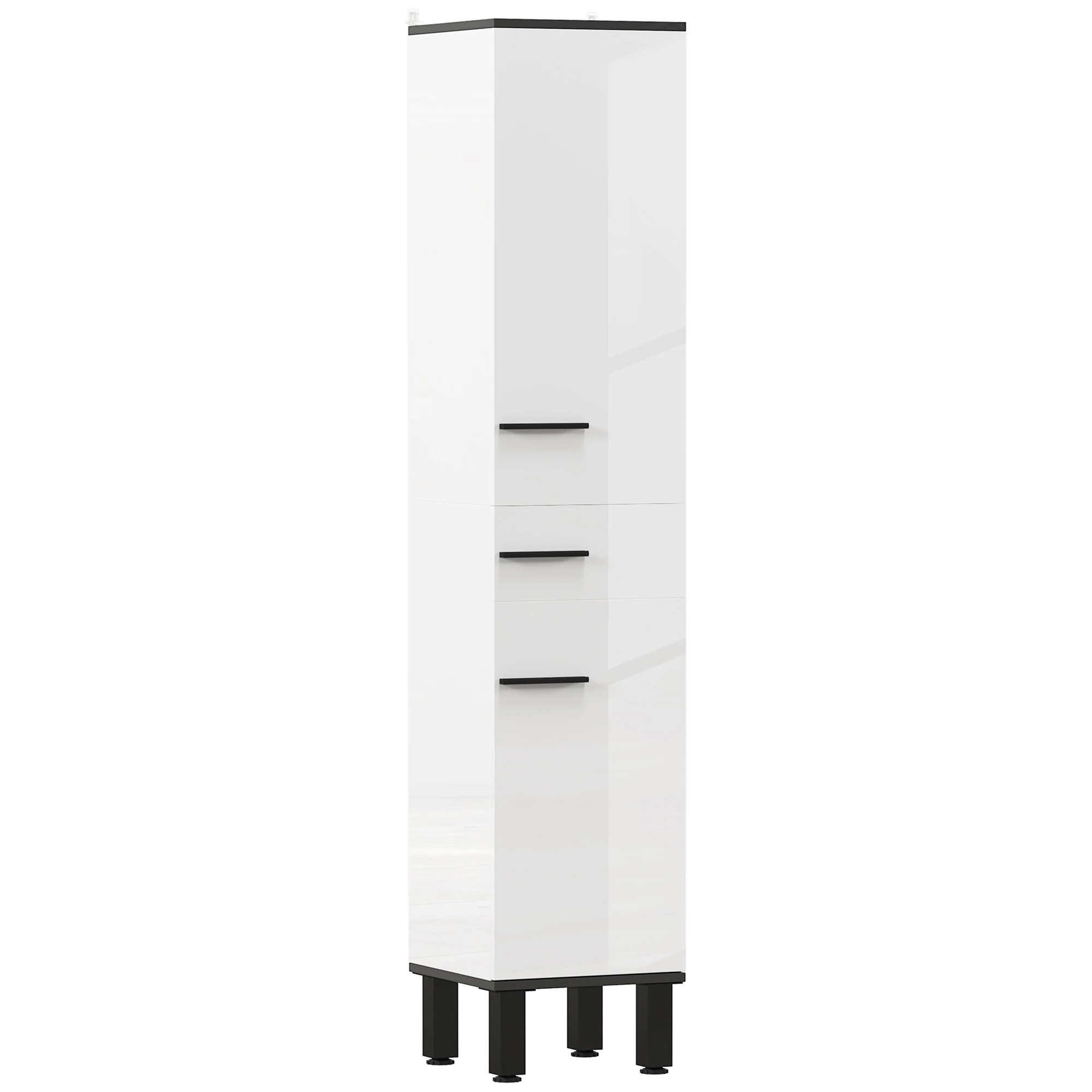 Aprovecha el espacio de tu baño con esta columna de HOMCOM. Con dos armarios, estantes ajustables y un cajón, es ideal para mantener todo en orden y siempre a mano. Su diseño alto y elegante en blanco, con detalles en negro, se adapta perfectamente a cualquier rincón. Además, este mueble de baño está equipada con patas ajustables y un sistema anti-vuelco, garantizando mayor seguridad y estabilidad.