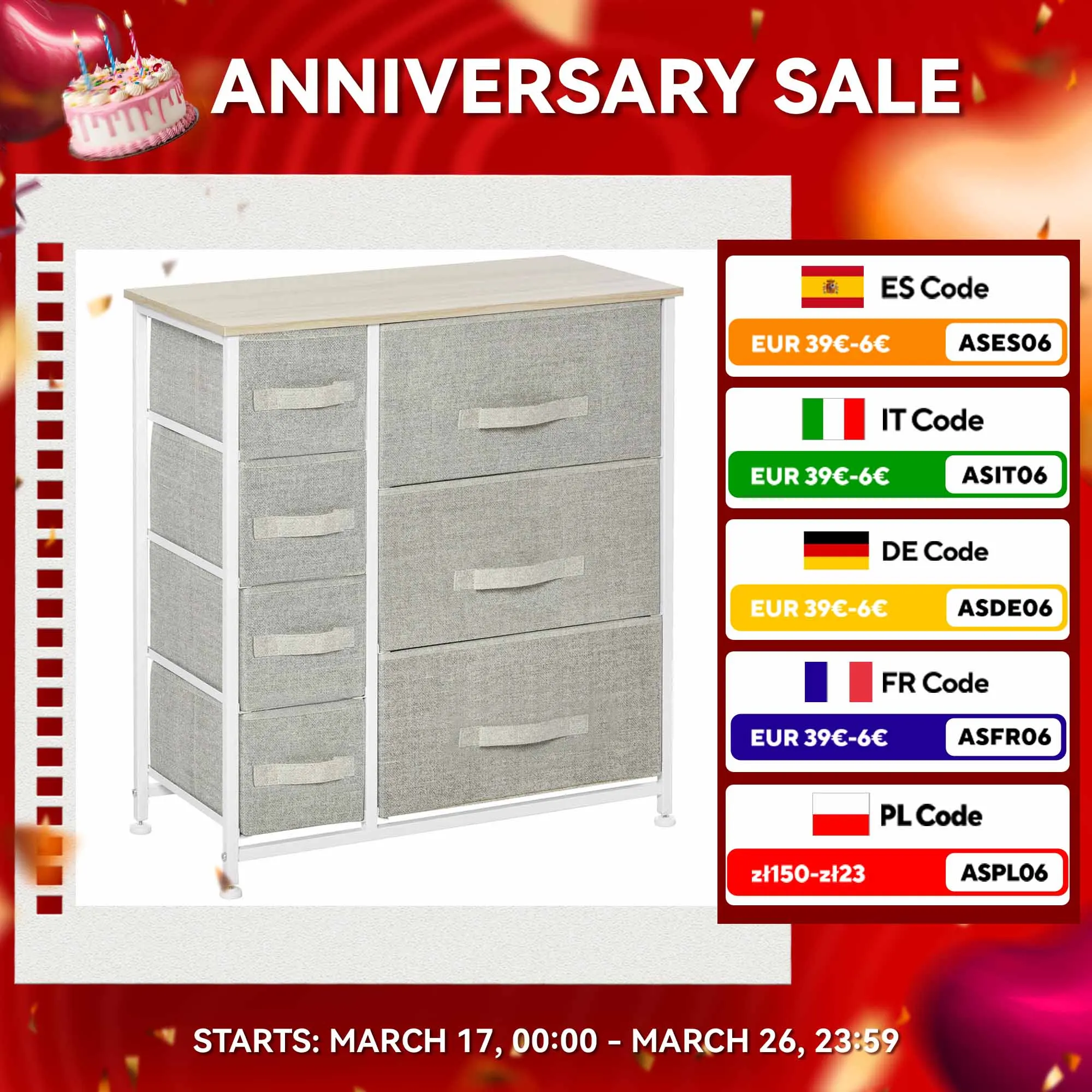 ¿Estás buscando una cómoda bonita y funcional? Esta de HOMCOM es la combinación perfecta entre elegancia y ahorro de espacio. Fabricada con una resistente estructura de metal y encimera de MDF, cuenta con 7 cajones de tela non woven extraíbles y una amplia encimera para tener tus objetos de decoración expuestos ¡Es la solución perfecta para cualquiera que busque espacio de almacenamiento extra!