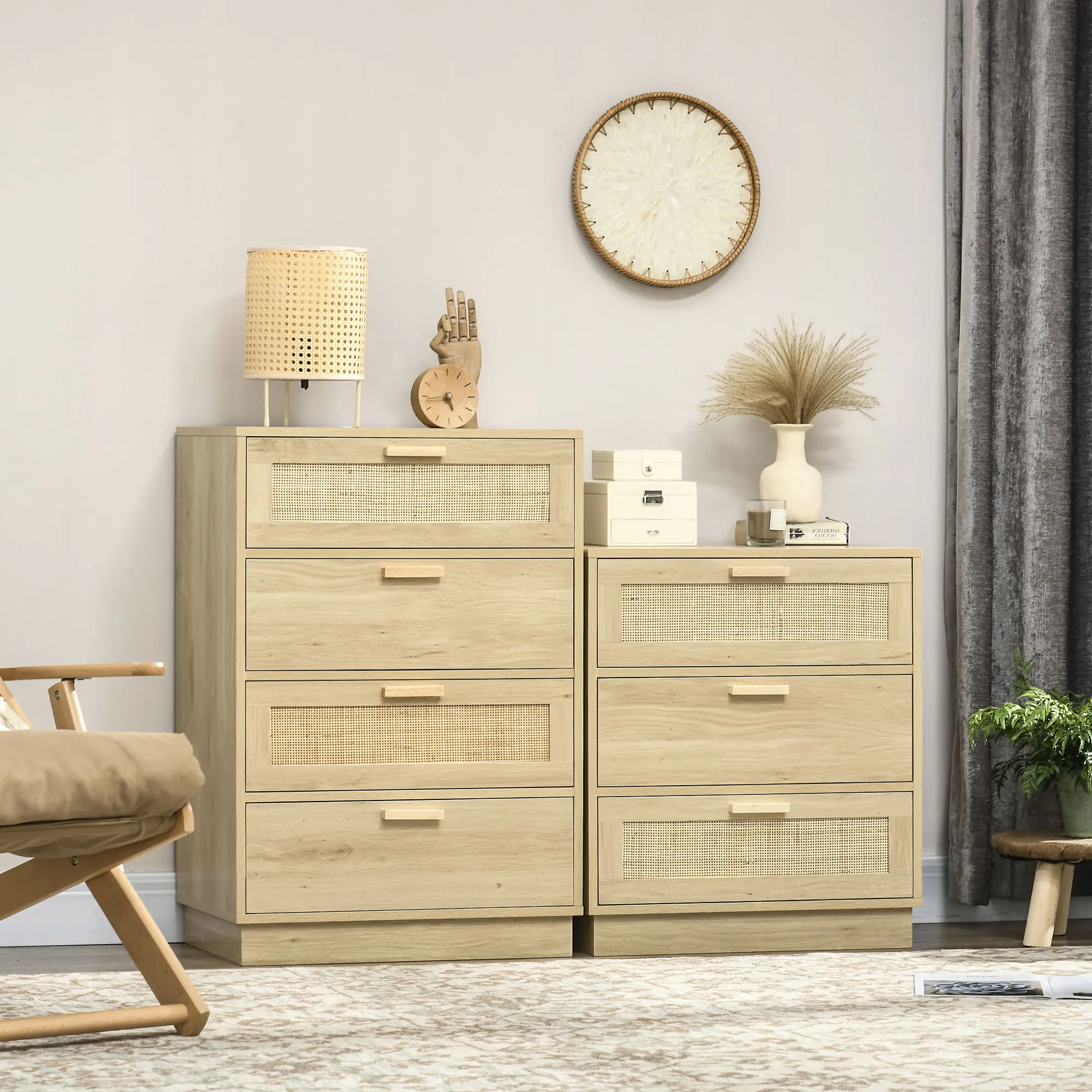 Características:• Cajonera estilo Cannage que destaca por su diseño bohemio y estética natural • La bonita combinación de cajones con frente de rejilla de mimbre y otros que no, dará un toque de elegancia donde sea que lo coloques • Cuenta con 3 cajones para ofrecer un amplio espacio para guardar tus pijamas, calcetines, juguetes u otros artículos cotidianos • La encimera grande se puede usar para exhibir tus decoraciones favoritas, marcos de fotos, lámparas de mesa y más • Los tiradores facilitan la apertura y el cierre de los cajones • Fabricado en resistente melamina de madera, ideal para uso prolongado • Tiene sistema antivuelco para mayor estabilidad y seguridad • Fácil de limpiar con un paño húmedo • Requiere montaje