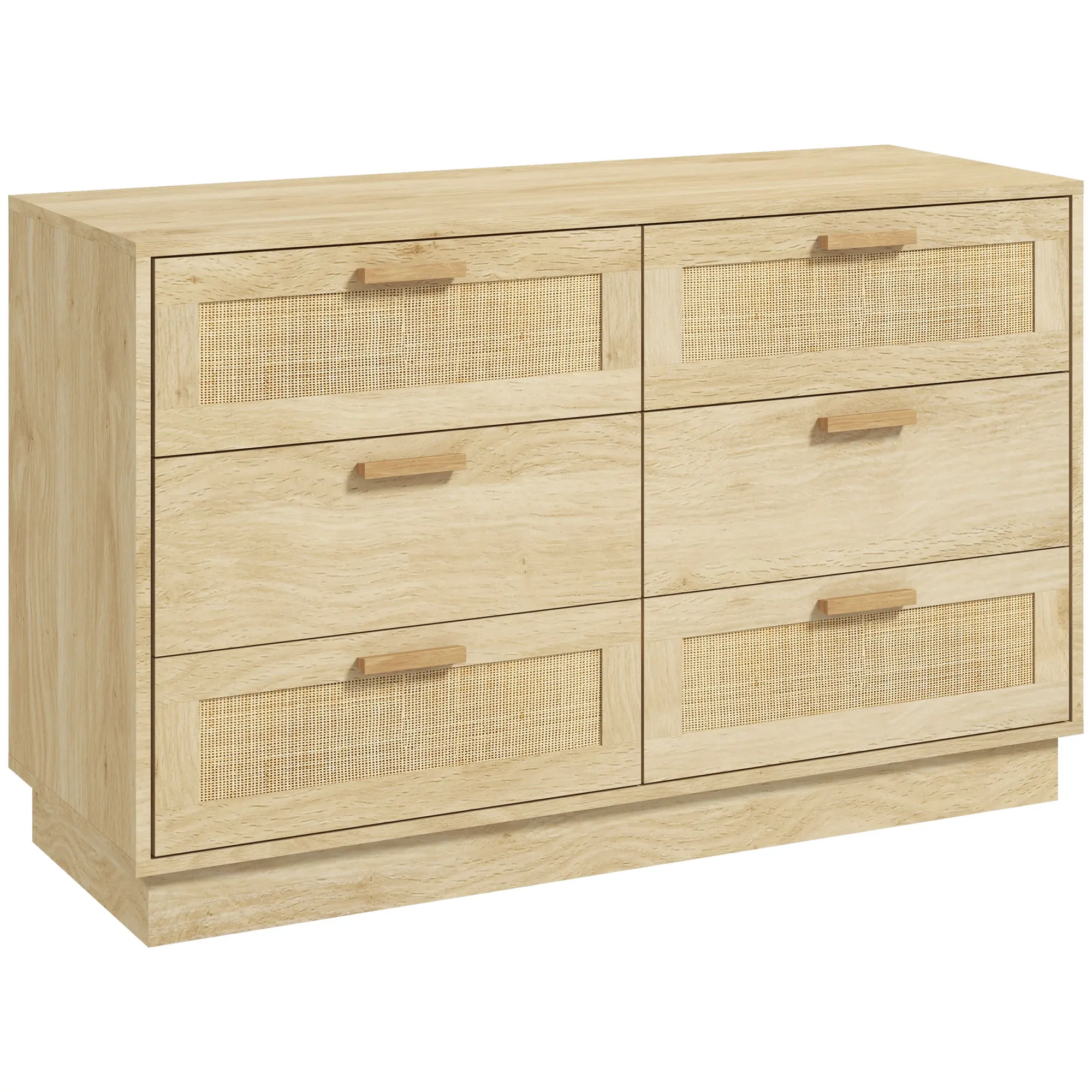 Comprar HOMCOM Cómoda de Noche con Cajones de Rejilla de Ratán Cómoda de Dormitorio Estilo Bohemio Antivuelco para Sala 110x40x69 cm Natural