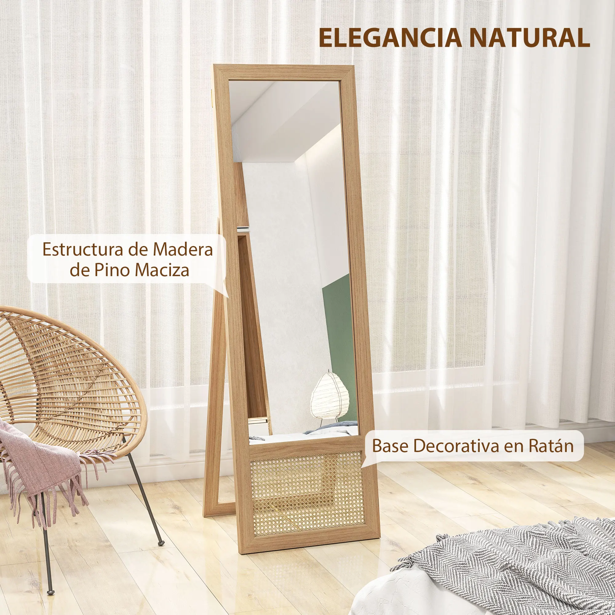 ● La estructura de madera de pino y la base de mimbre PP añaden un toque único a cualquier ambiente