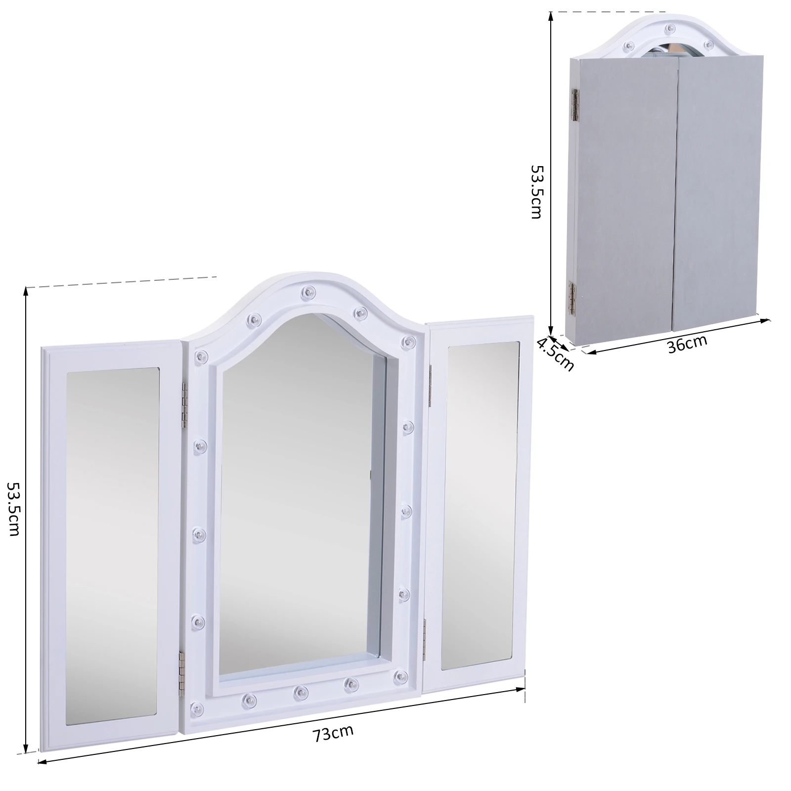 Comprar HOMCOM Espejo de Maquillaje con Luz LED Plegable Espejo Triple de Mesa Regalo Original para Mujer Cargo con USB o Bateria Espejo