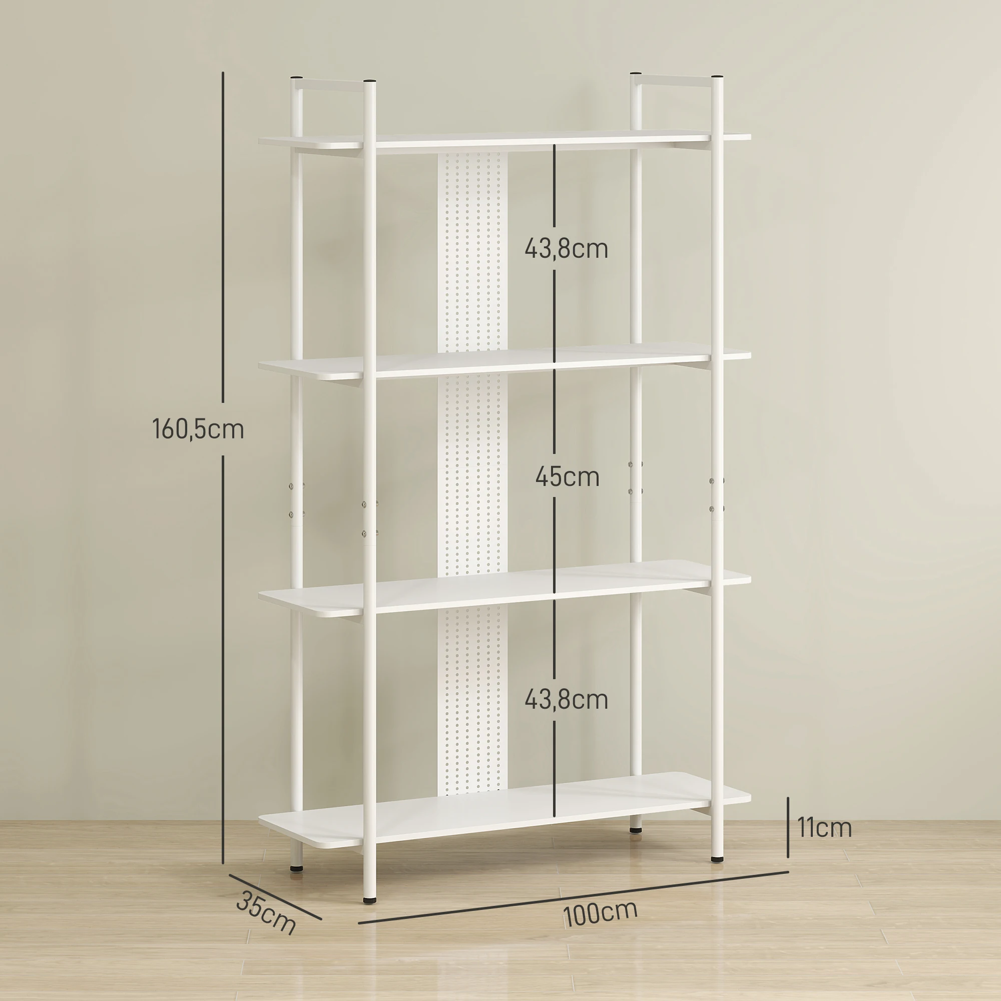 Transforma cualquier habitación con la unidad de almacenamiento moderna HOMCOM, que combina líneas elegantes y un acabado blanco con un práctico tablero perforado para tus esenciales. Esta estantería estrecha de 4 niveles ofrece amplio almacenamiento, manteniendo tu espacio ordenado y con estilo. Su estructura metálica garantiza estabilidad y los pies antideslizantes con diseño antivuelco añaden seguridad. Fácil de limpiar, es un añadido práctico para tu hogar.