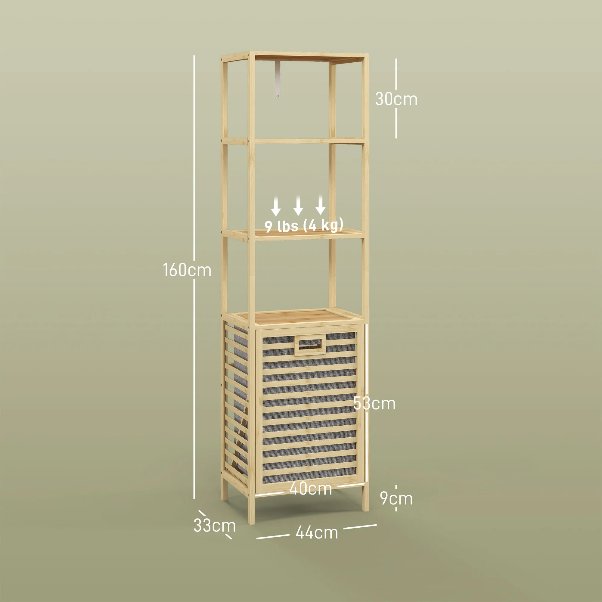 Comprar HOMCOM Estantería de Baño de Bambú Estantería de Almacenaje Mueble de Baño con 3 Estantes y 1 Cesto para Ropa Sucia Desmontable 44x33x160 cm Natural