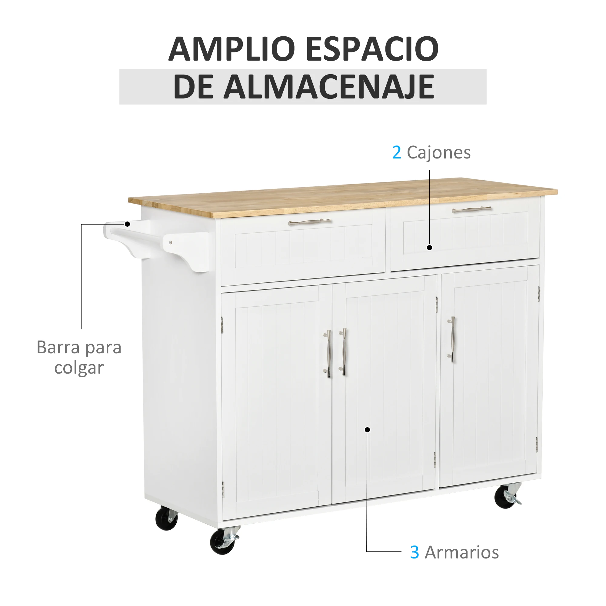 ● Fácil de mover gracias a sus 4 ruedas giratorias 360°, 2 de ellas con freno