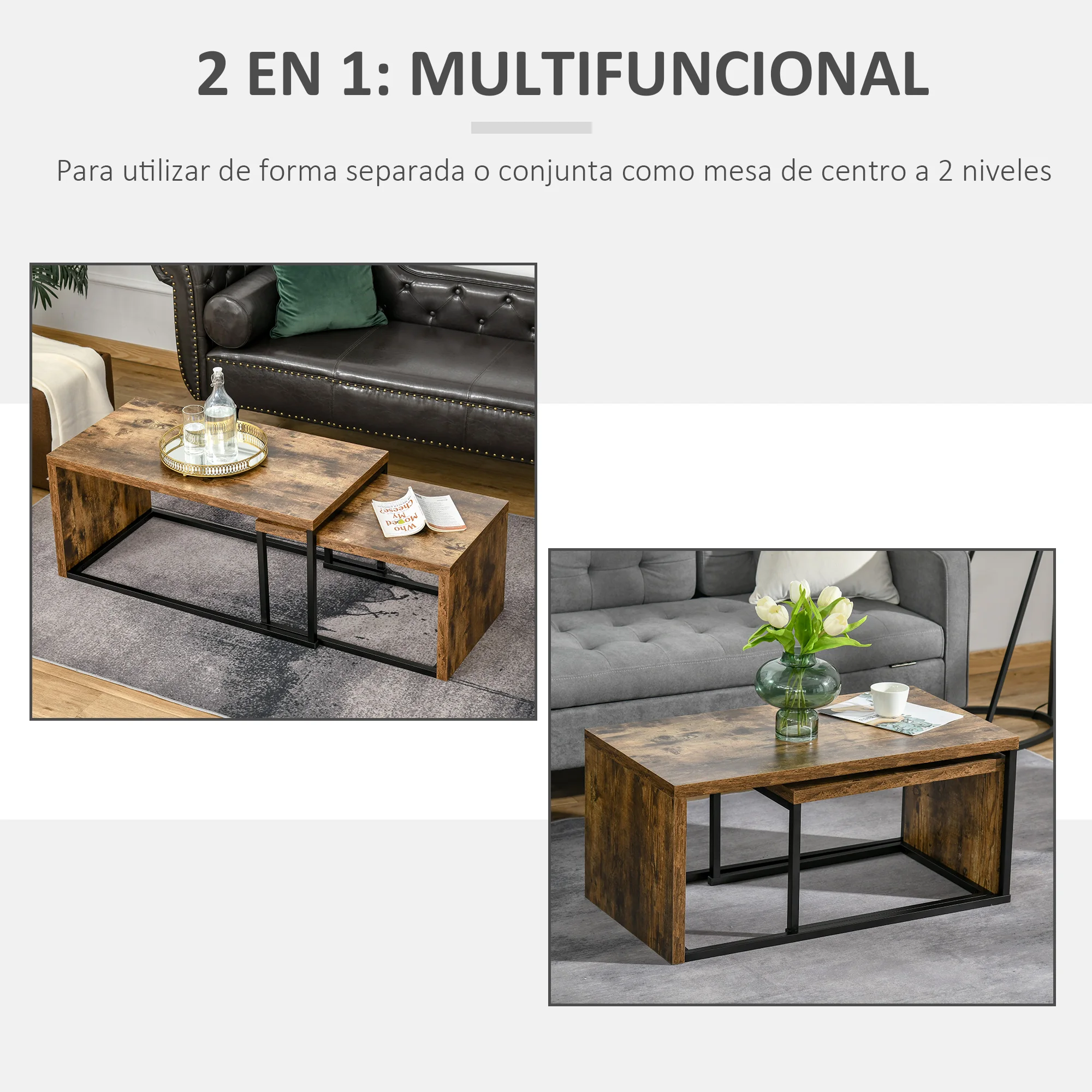 Agrega estilo y funcionalidad a tu hogar con este conjunto de mesas de centro de HOMCOM. Hechas de MDF laminado y estructura de madera, son 2 mesas resistentes y adecuadas para múltiples funciones. Se pueden utilizar de manera conjunta, por ejemplo, como mesa de centro a dos niveles, o de forma separada a modo de mesa auxiliar en el dormitorio o como mesa de lectura. Su bonito diseño combinará fácilmente con el resto de muebles de tu casa y añadirá un toque de elegancia y estilo.