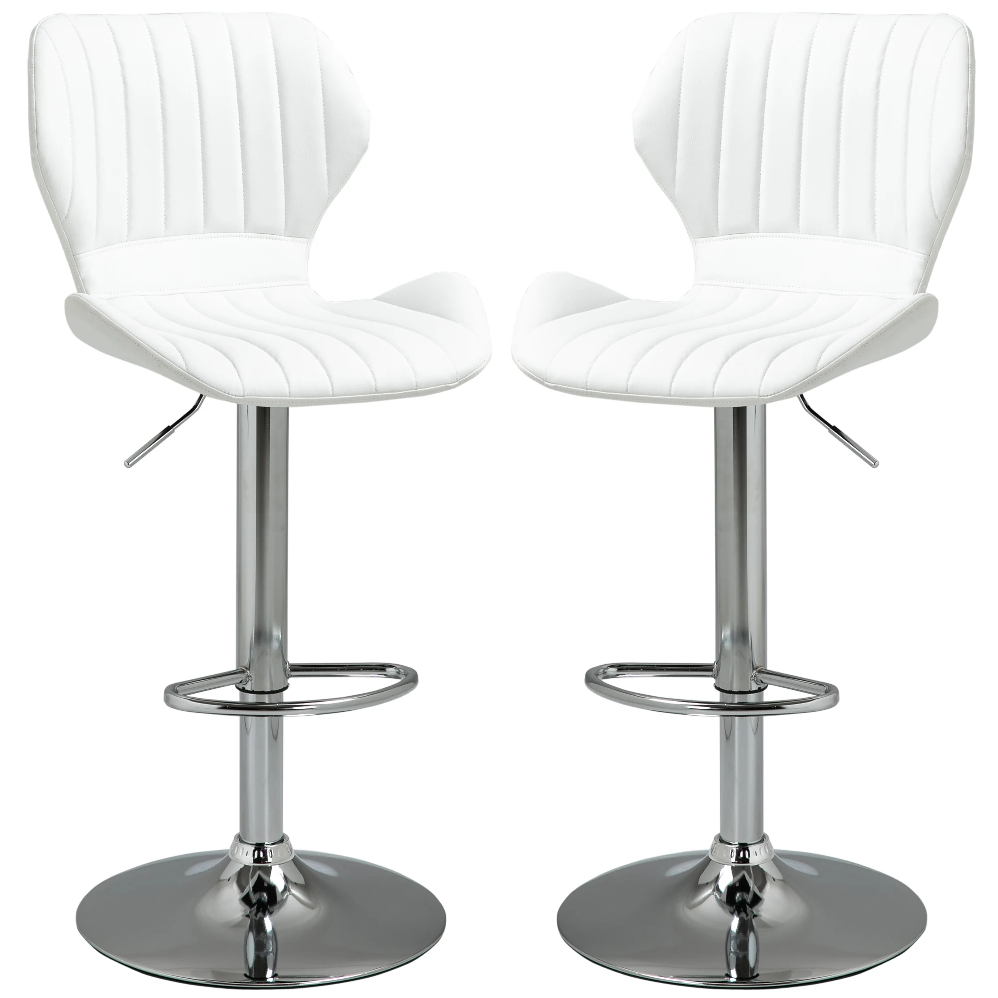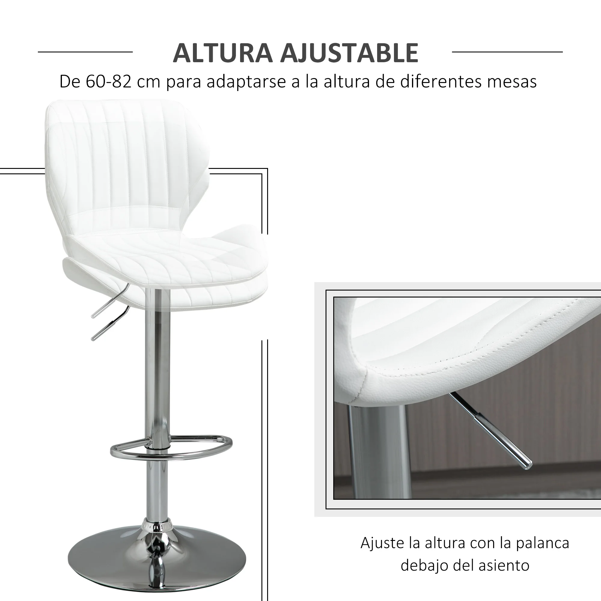 Complementa tu mesa alta o mostrador con este fantástico conjunto de taburetes de bar de HOMCOM con altura ajustable. El diseño del asiento con respaldo curvado, sin brazos y giratorio, proporciona una experiencia ergonómica de sentado. Completamente acolchado, es un asiento muy cómodo. Y este juego de taburetes de cocina cuenta con un bonito diseño de líneas verticales mediante puntadas que le da un aspecto muy elegante. La base redonda y pesada de metal ofrece un soporte resistente y estable.