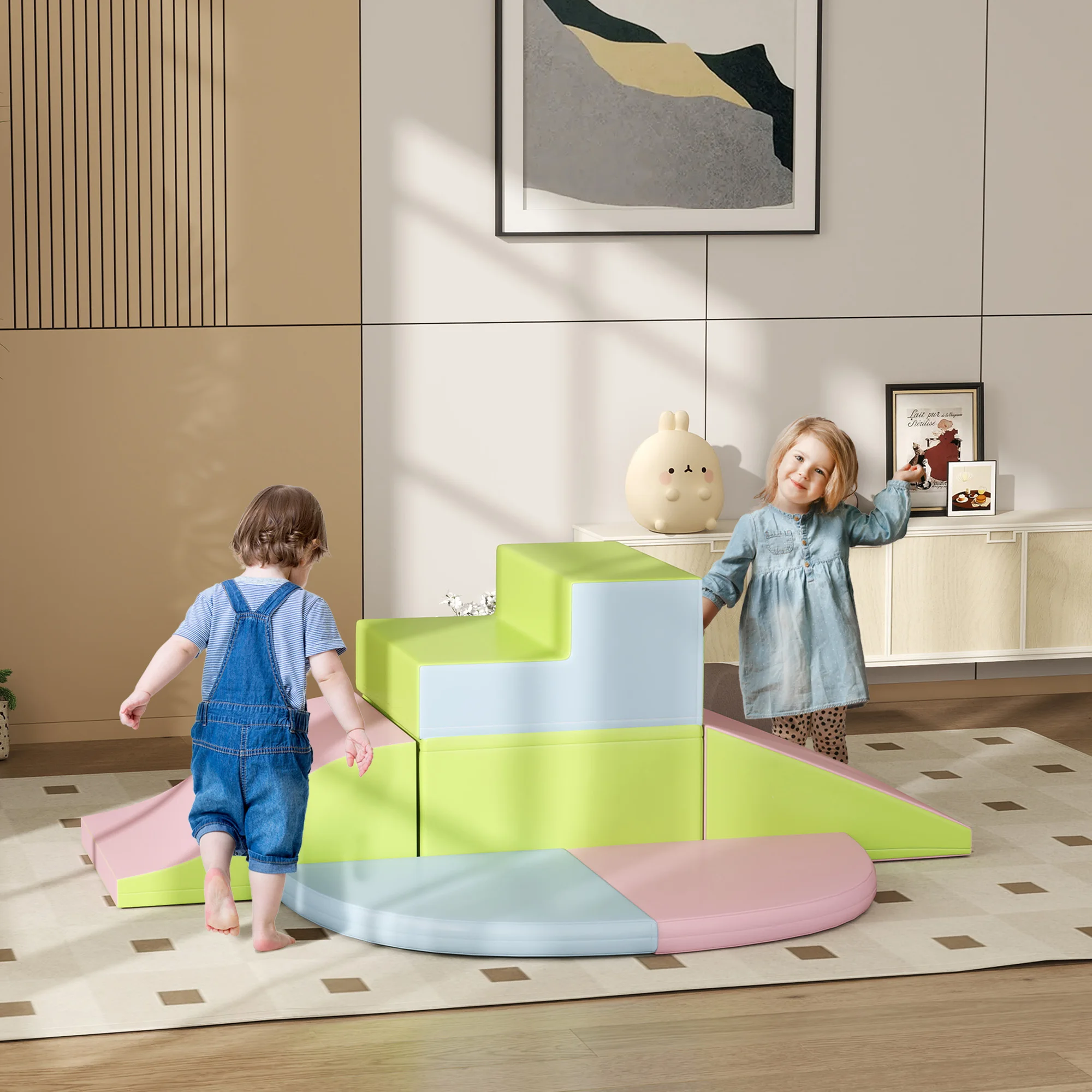 HOMCOM Juego de 6 Bloques Psicomotricidad para Niños Bloques de Construcción Figuras de Construcción Juguete para Aprendizaje para Escalar y Gatear Multicolor