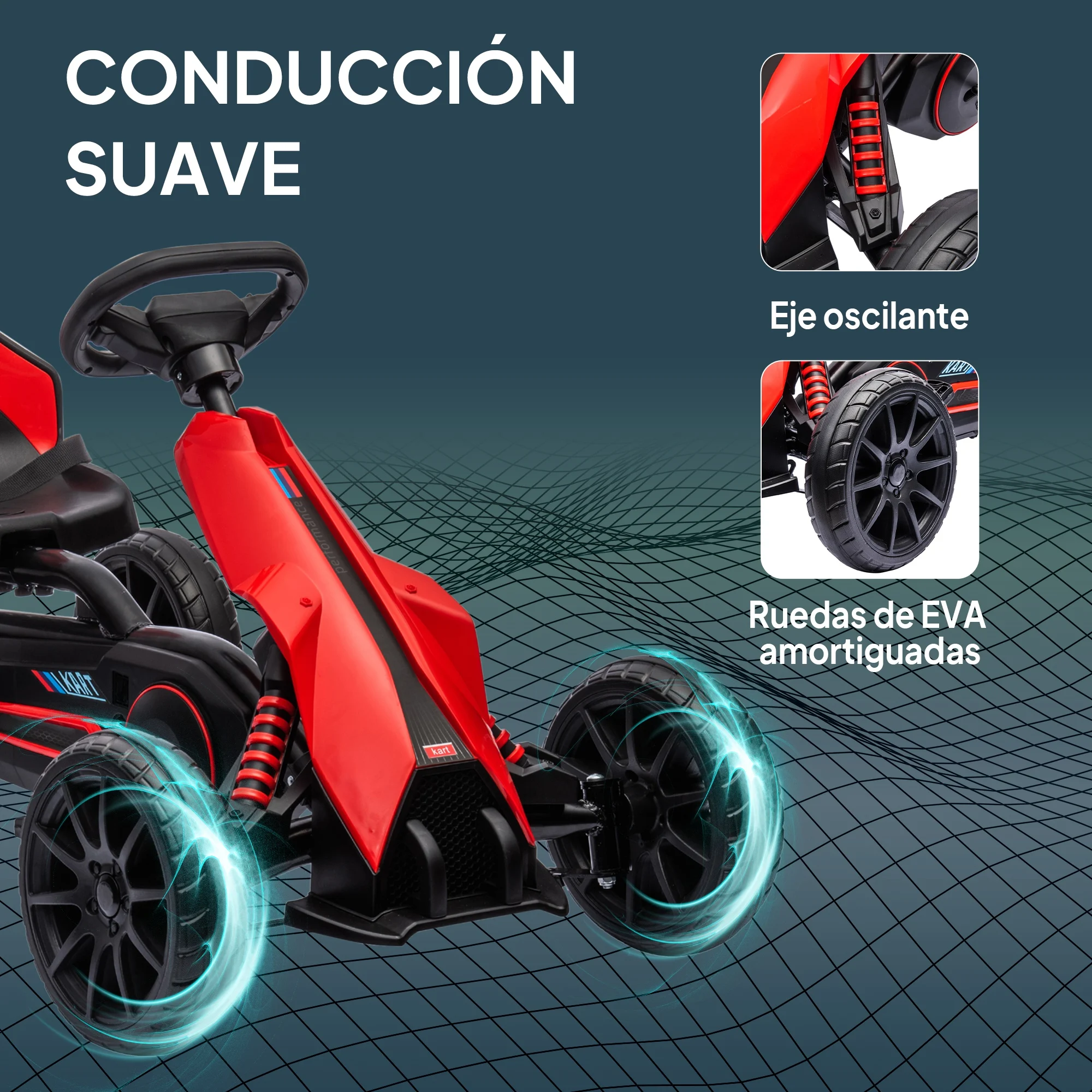 ¡Haz que tu pequeño piloto viva grandes aventuras con este kart a pedales de HOMCOM! Con un diseño fácil de controlar, incluye freno de mano y marcha hacia adelante y atrás. Los pedales permiten que se divierta mientras se mantiene activo. Perfecto para correr en el jardín o en el parque. ¡Ponle los cinturones y a disfrutar!