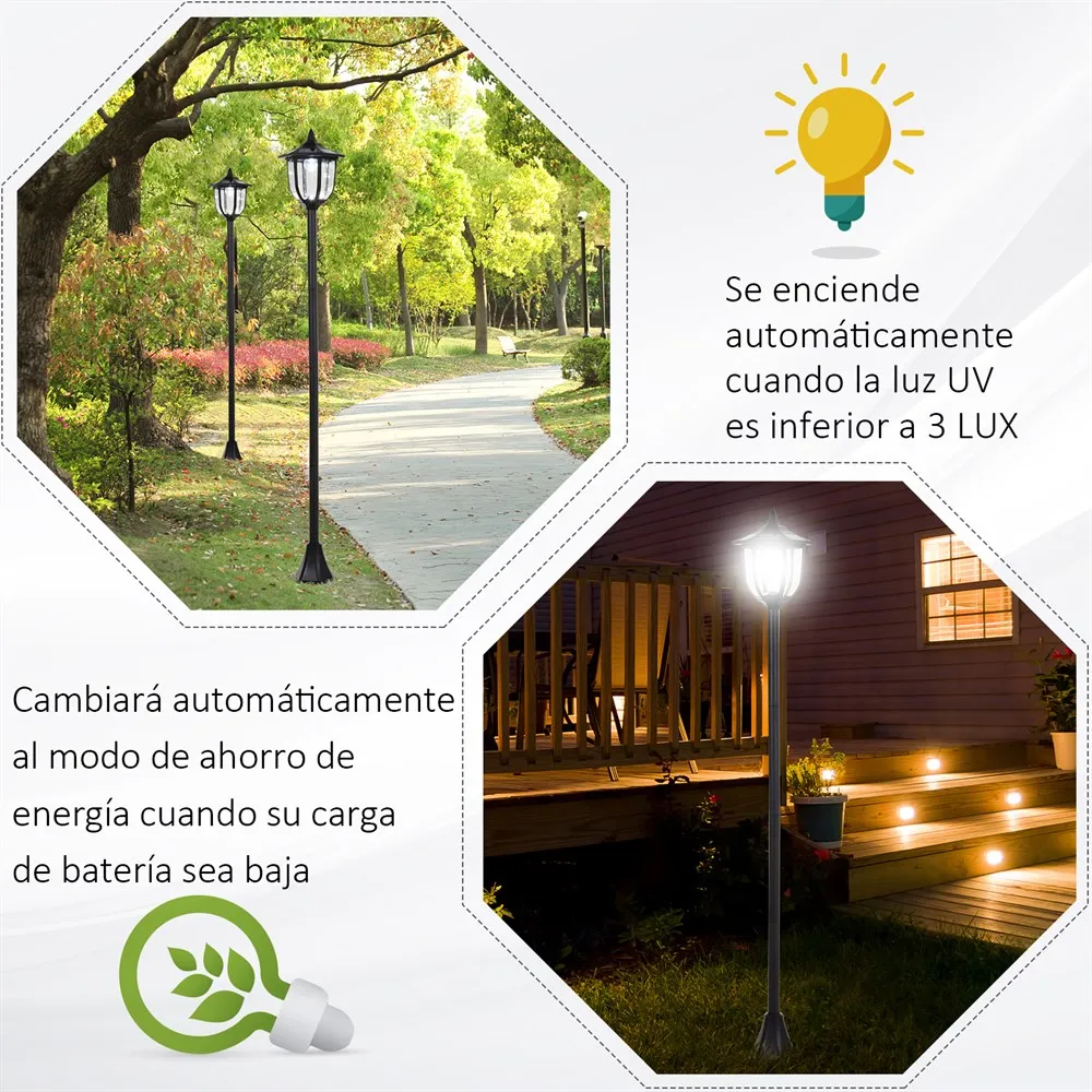 Comprar HOMCOM Lámpara de Pie Exteriores con Panel Solar a Cargar Batería Protección al Ambiente 6 LED Instalar Fácil Negro Ф26,5x177cm