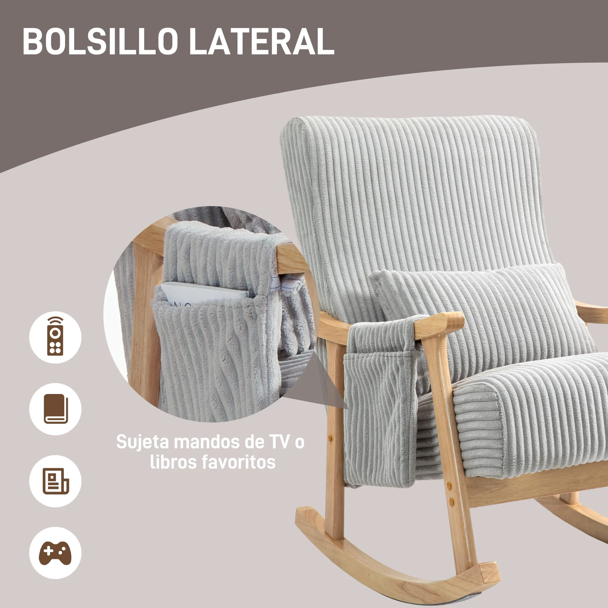 Comprar HOMCOM Mecedora Moderna Silla Mecedora de Pana con Patas y Reposabrazos de Madera de Haya Cojín Lumbar y Bolsillo Mecedora para Lactancia Carga 120 kg para Dormitorio Salón Gris