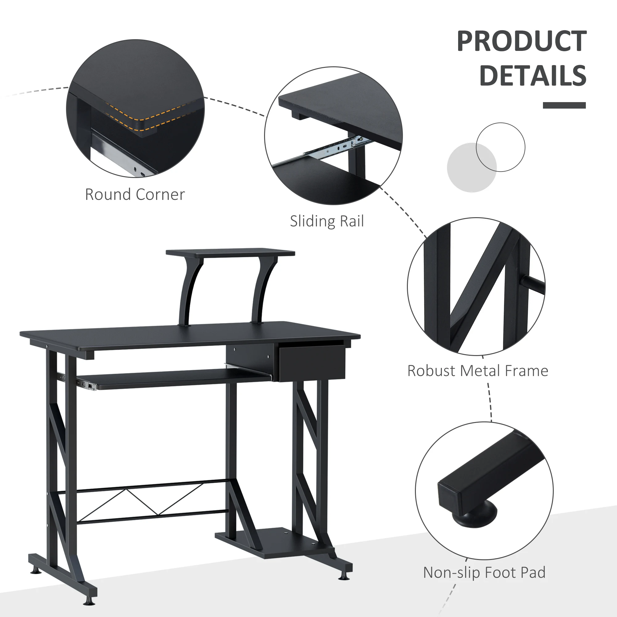 • Mesa de ordenador facil de limpiar con superficie de madera MDF
