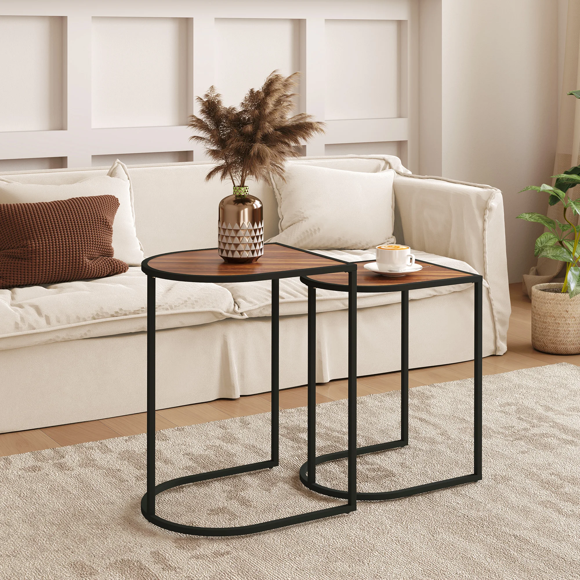 Comprar HOMCOM Mesas Auxiliares para Salón Mesas Nido de 2 Piezas con Marco de Acero Mesas de Centro Pequeñas para Dormitorio Sala de Estar Marrón Rústico