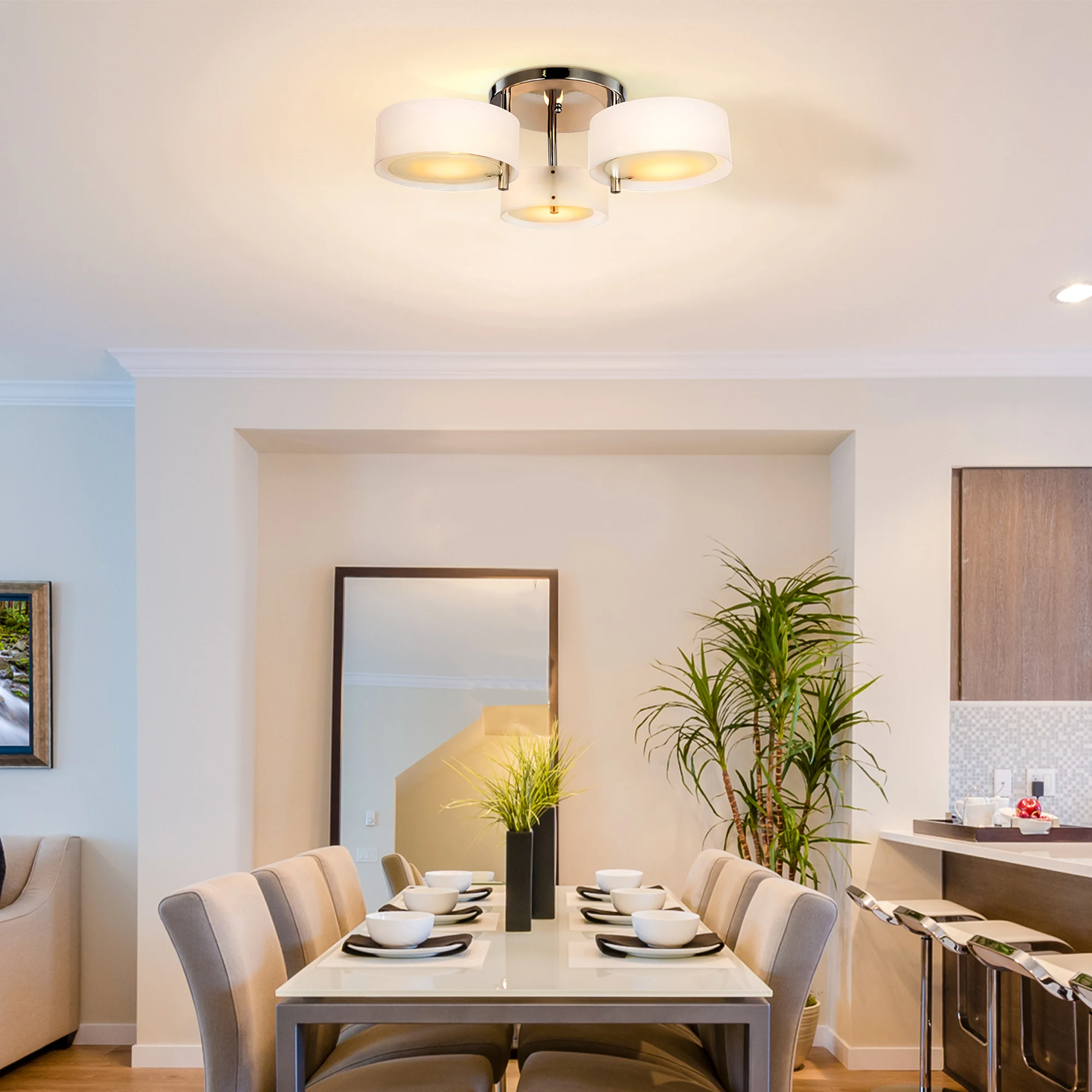- Lámpara de salón con 3 luces y pantallas de acrílico, de estilo moderno y contemporáneo;