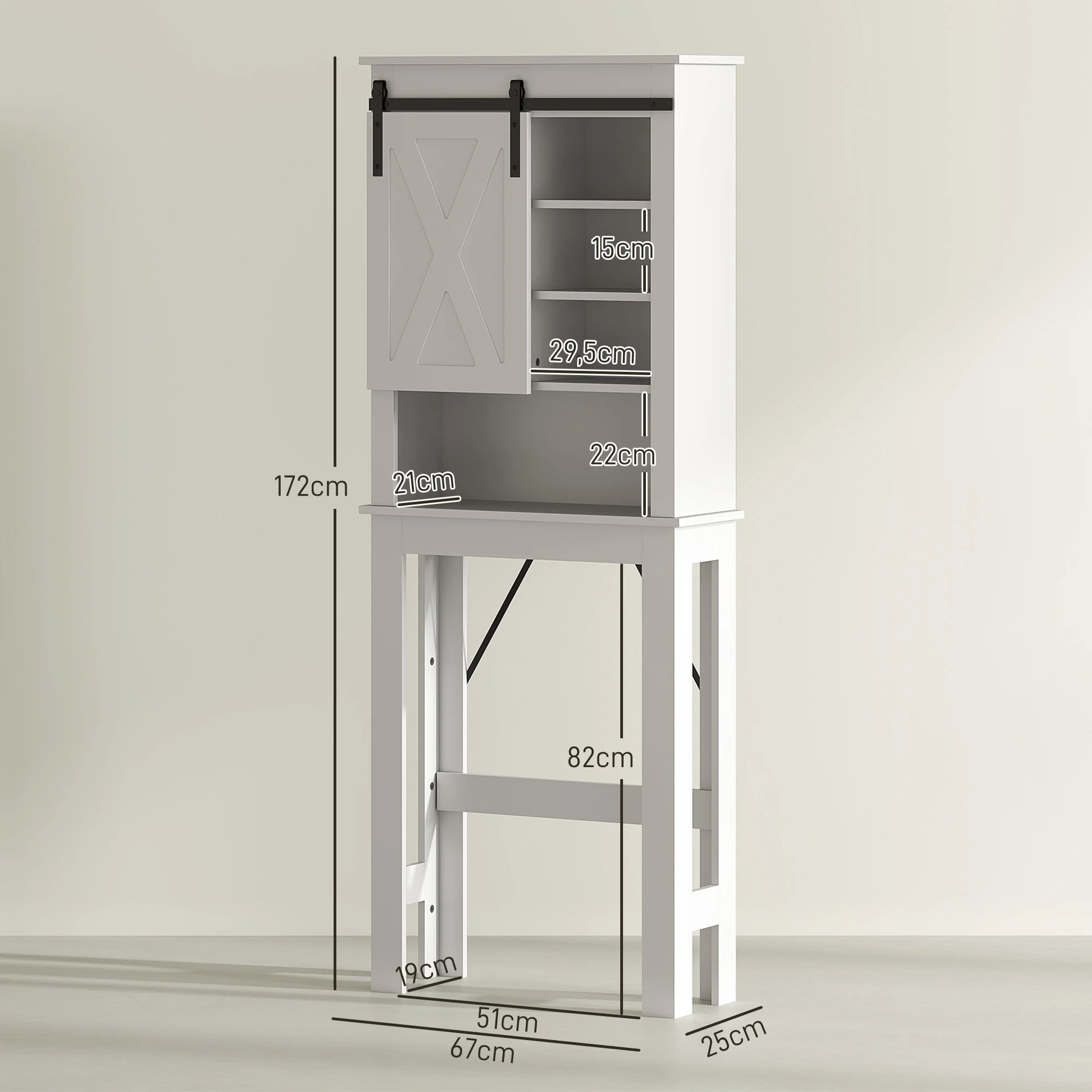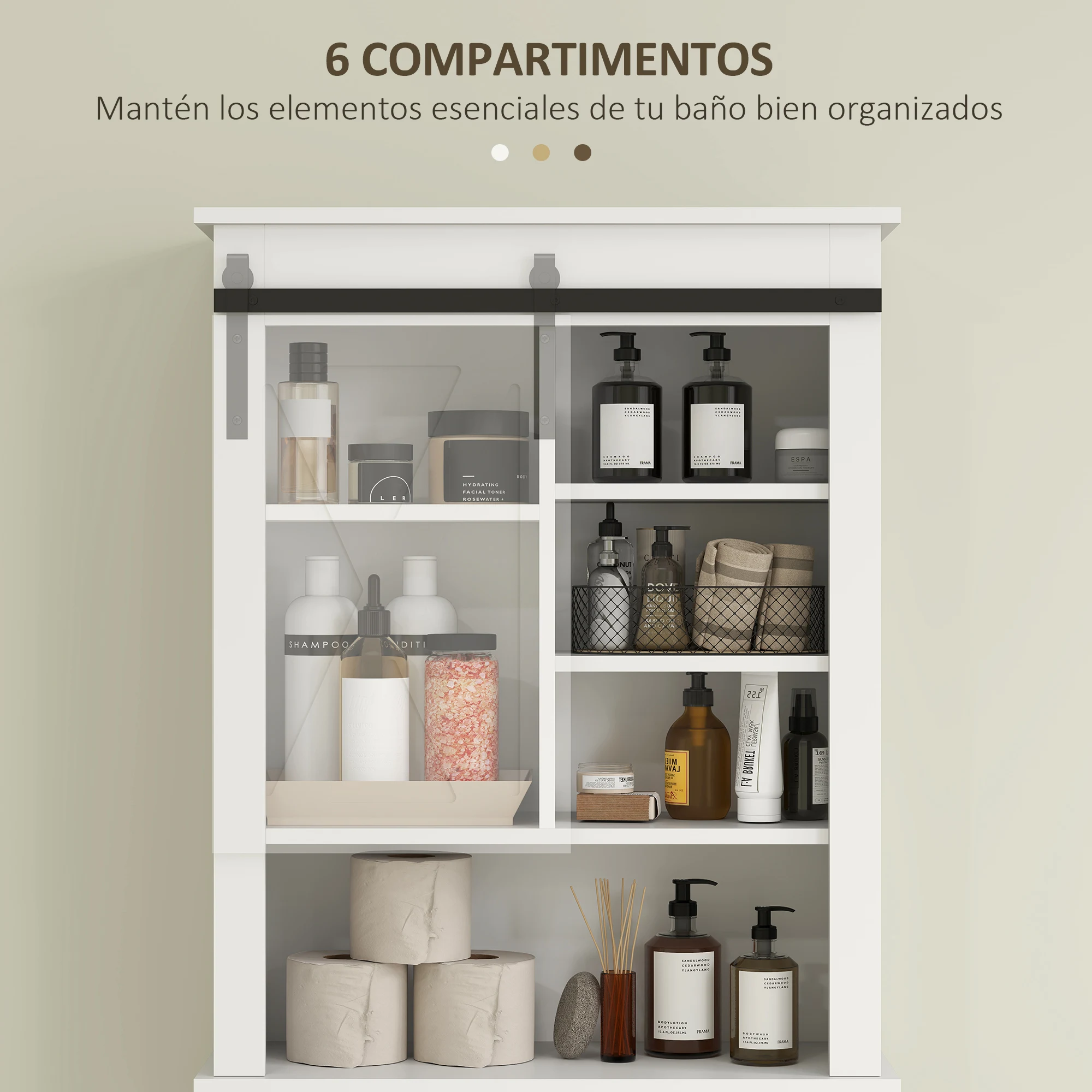 Aprovecha al máximo el espacio de tu baño con este mueble para sobre el inodoro de HOMCOM. Tiene una puerta corredera estilo granero que le da un toque campestre y ofrece espacios abiertos y cerrados para que puedas organizar tus cosas de forma ordenada y sin polvo. Su diseño vertical con seis compartimentos es práctico y elegante, perfecto para cualquier baño. Además, se adapta a la mayoría de los inodoros, combinando utilidad y estilo.
