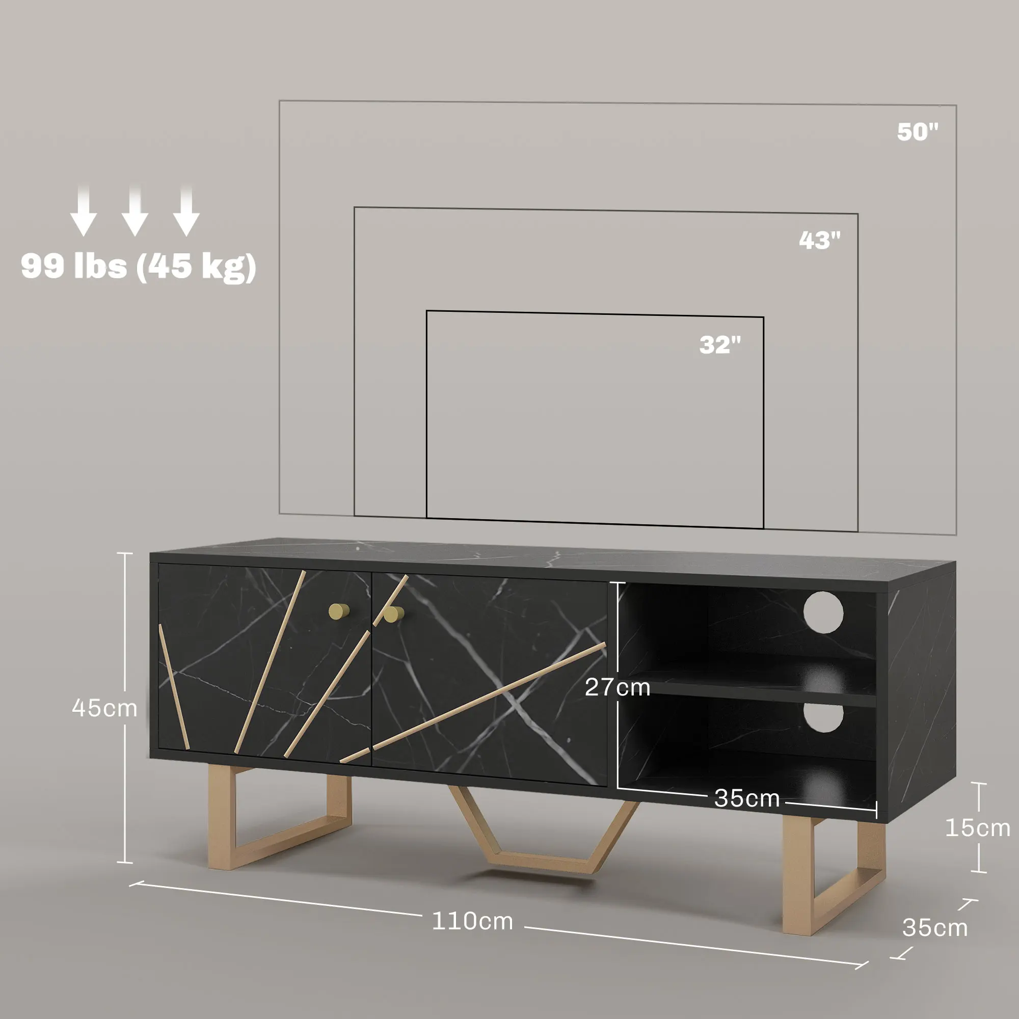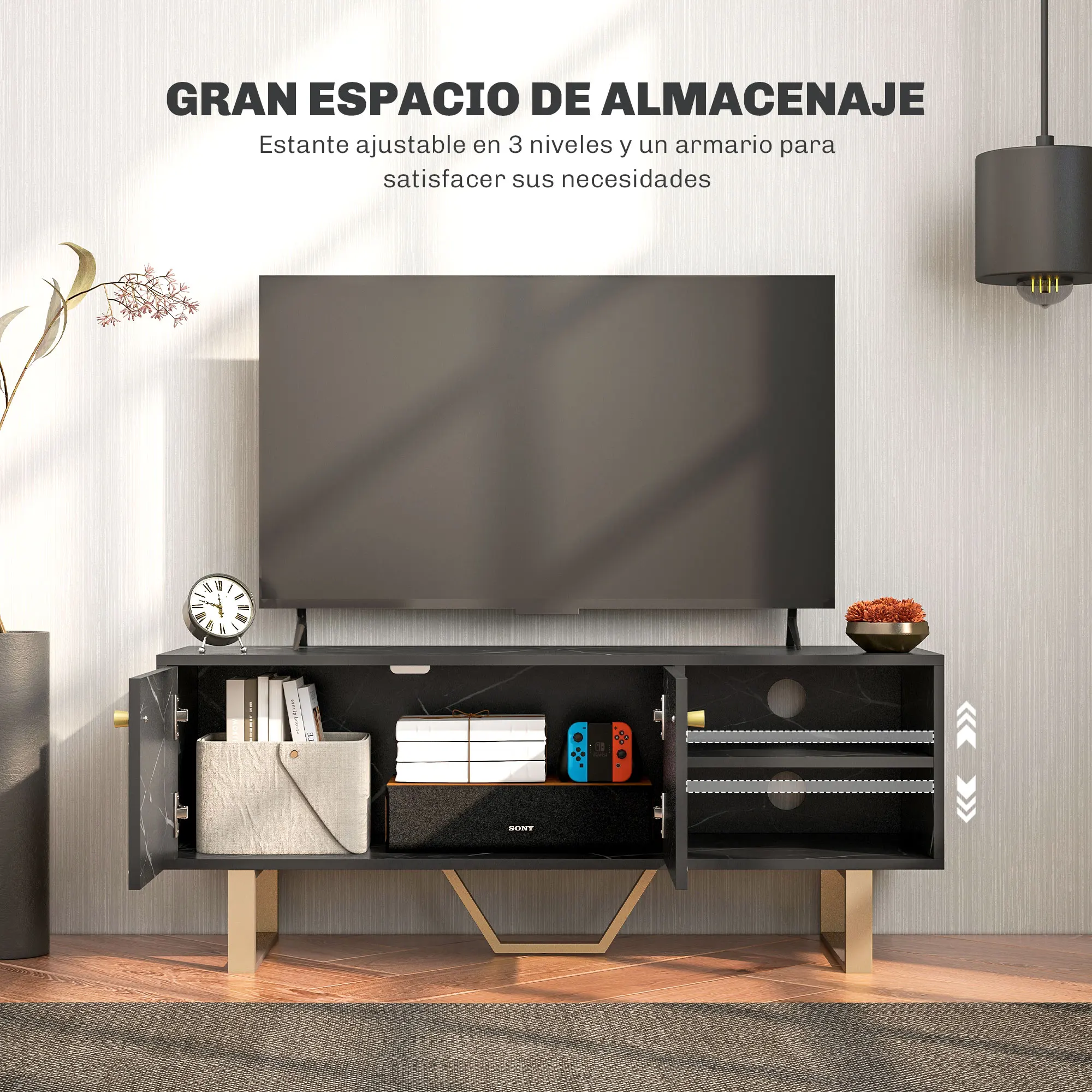Comprar HOMCOM Mueble de TV Mesa de TV con 2 Puertas Estante Ajustable y Efecto Mármol Mueble de TV para Salón para Televisores de 50 Pulgadas Negro y Dorado