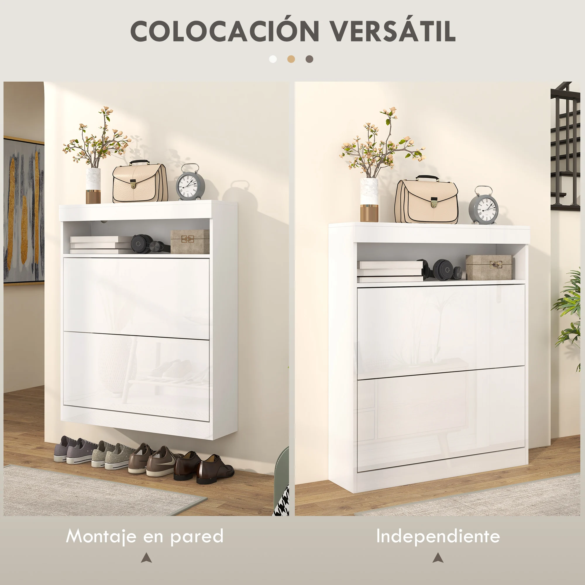 ● Con dos cajones abatibles con estantes ajustables para adaptarse a diferentes tamaños de zapatos