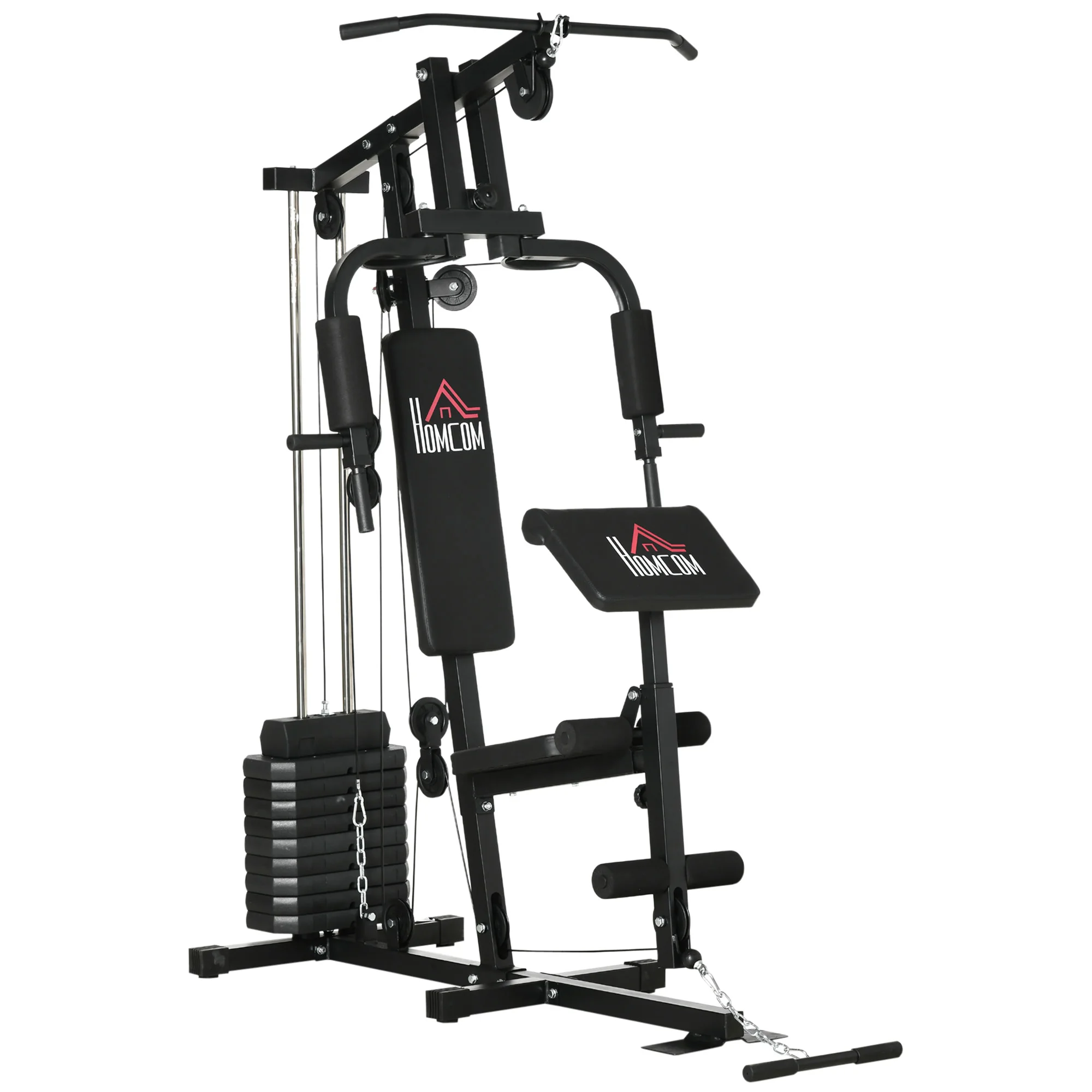 HOMCOM Multiestación de Musculación Máquina de Musculación con Placas de Peso de 45 kg Carga Max. 100 kg para Entrenamiento Fitness en Hogar Gimnasio Negro