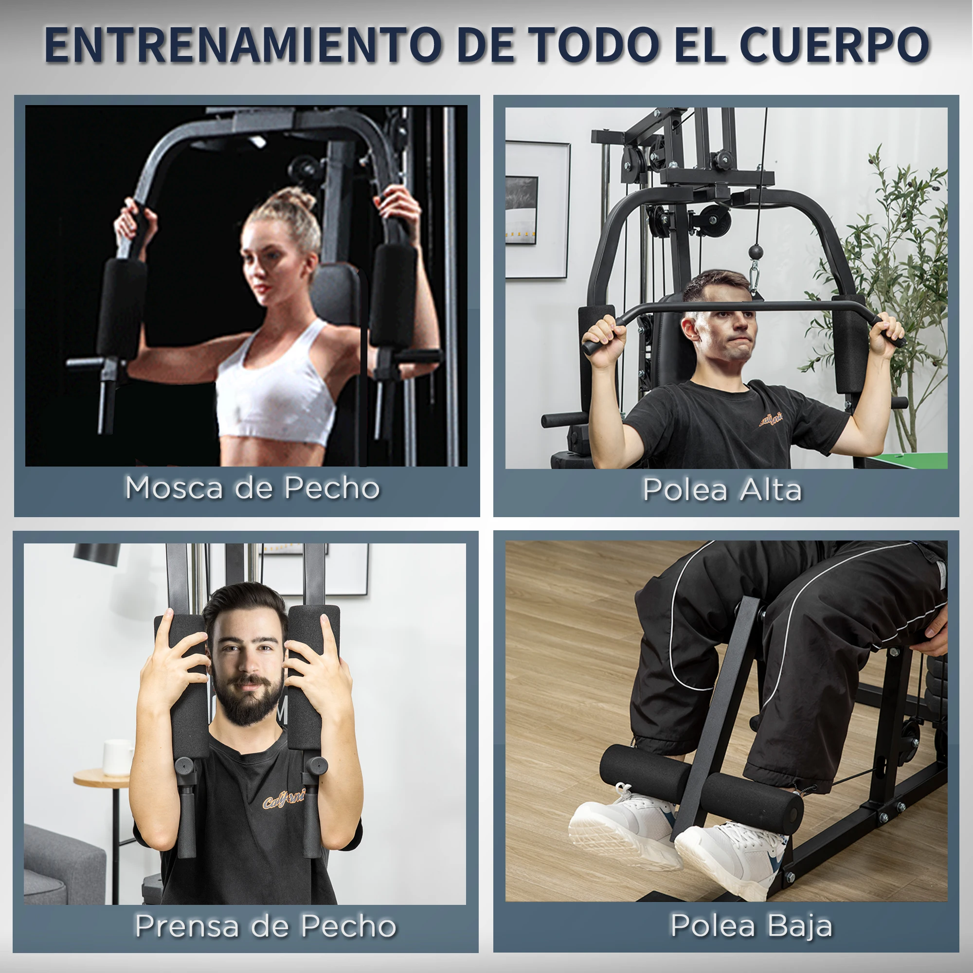 Comprar HOMCOM Multiestación de Musculación Máquina de Musculación con Placas de Peso de 45 kg Carga Max. 100 kg para Entrenamiento Fitness en Hogar Gimnasio Negro