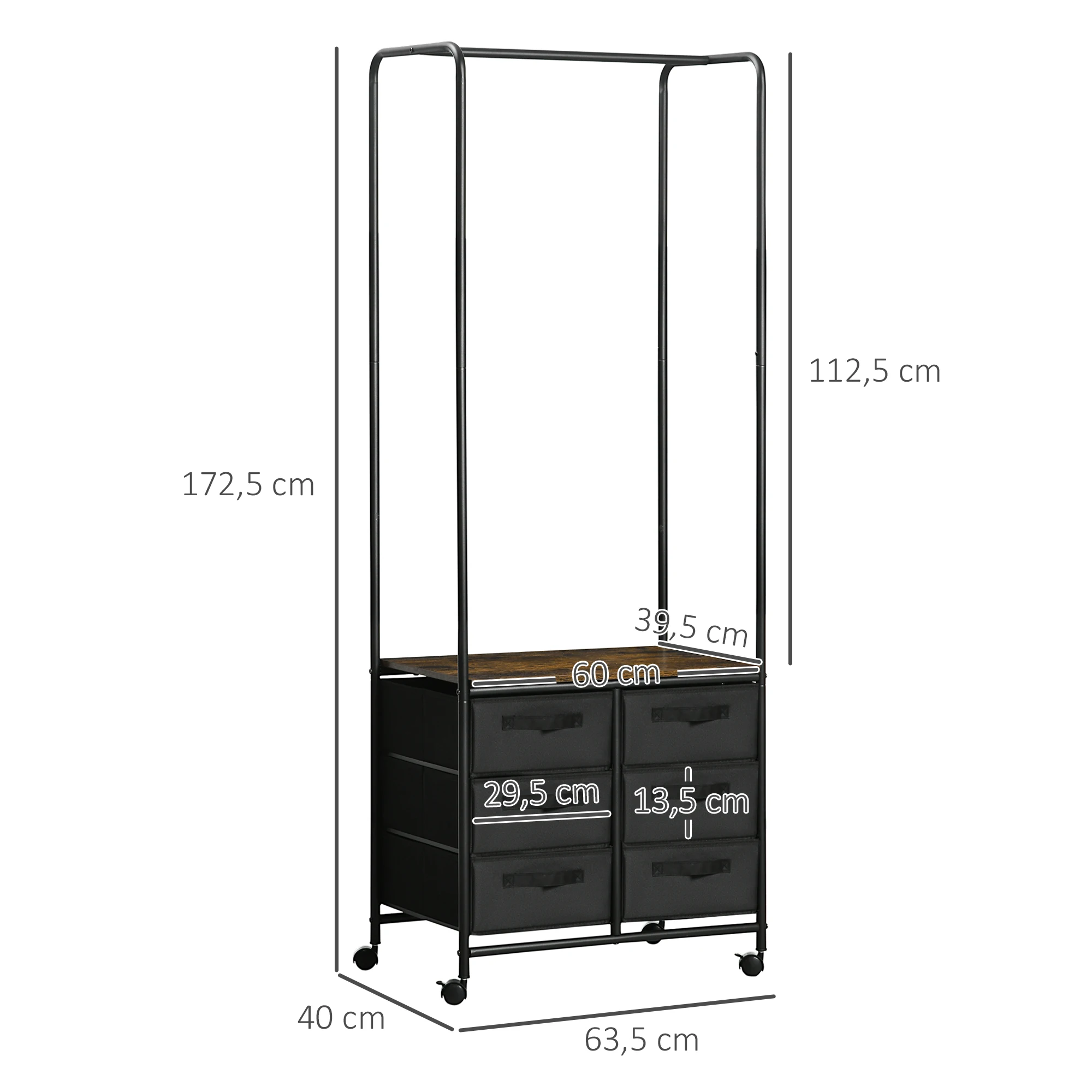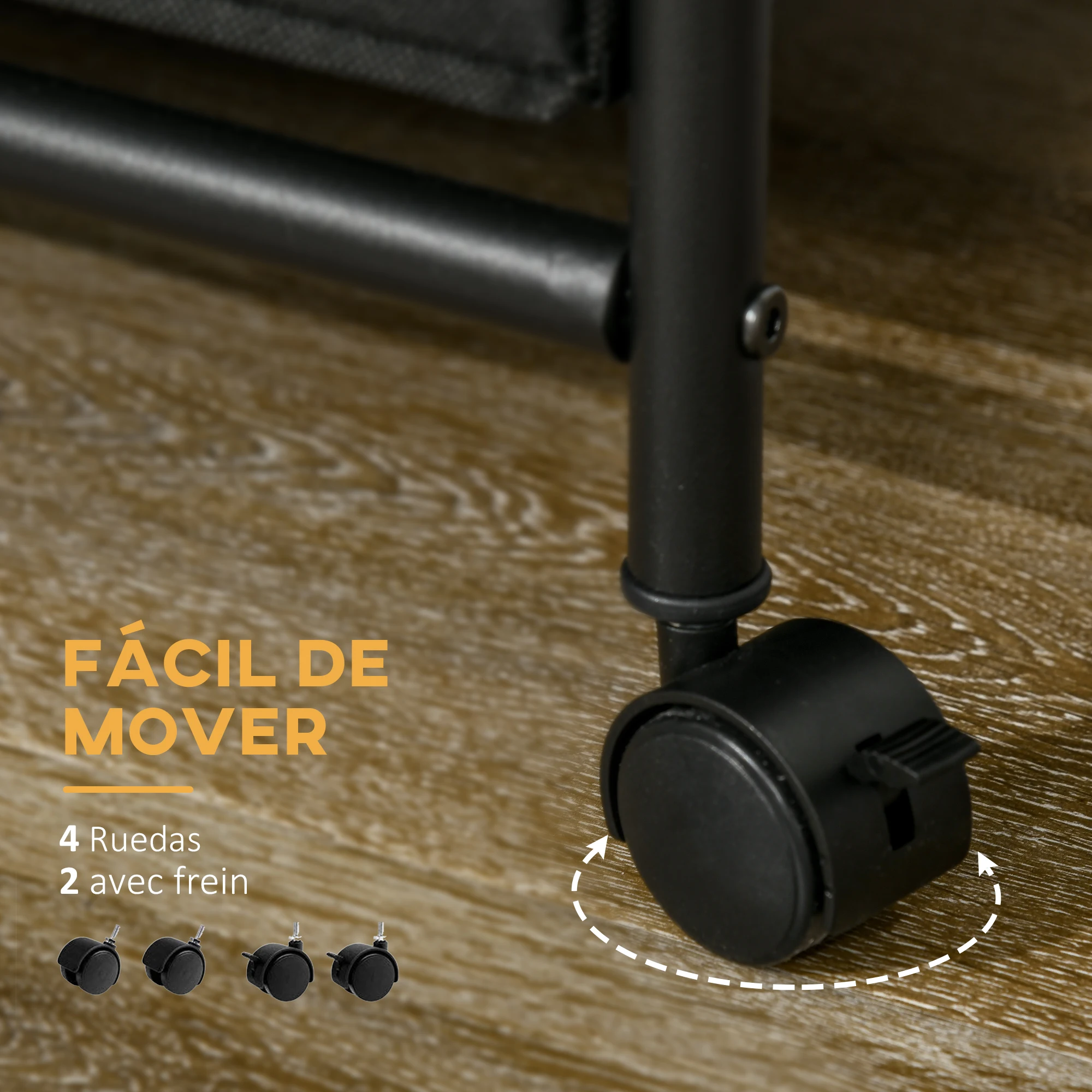 Despídete del caos en tu dormitorio y más allá con este perchero para ropa HOMCOM. Este burro para ropa con ruedas se compone de tres partes: una barra superior para colgar tus abrigos y vestidos, seis amplios cajones de tela no tejida perfectos para guardar tus calcetines, bolsos y ropa doblada, y un estante abierto para tus objetos de uso diario. Gracias a sus 4 ruedas, puedes mover este perchero de pie con facilidad de un lugar a otro o dejarlo fijo en su posición.