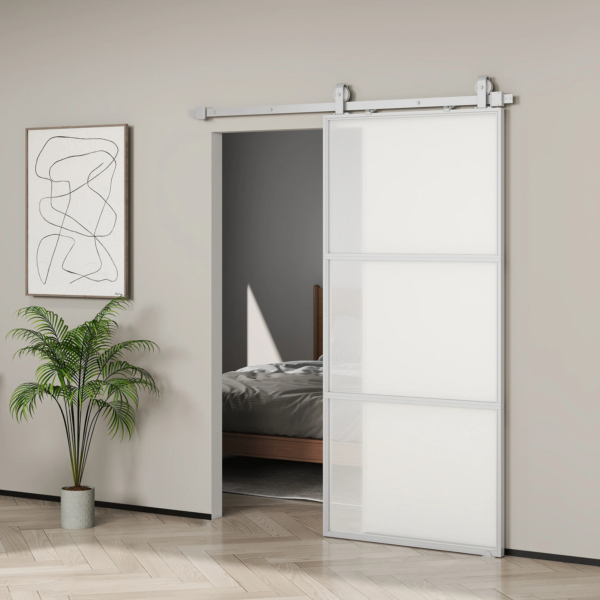 Esta puerta corredera adecuada para diferentes estancias como cocina, dormitorio, baño o lavadero;