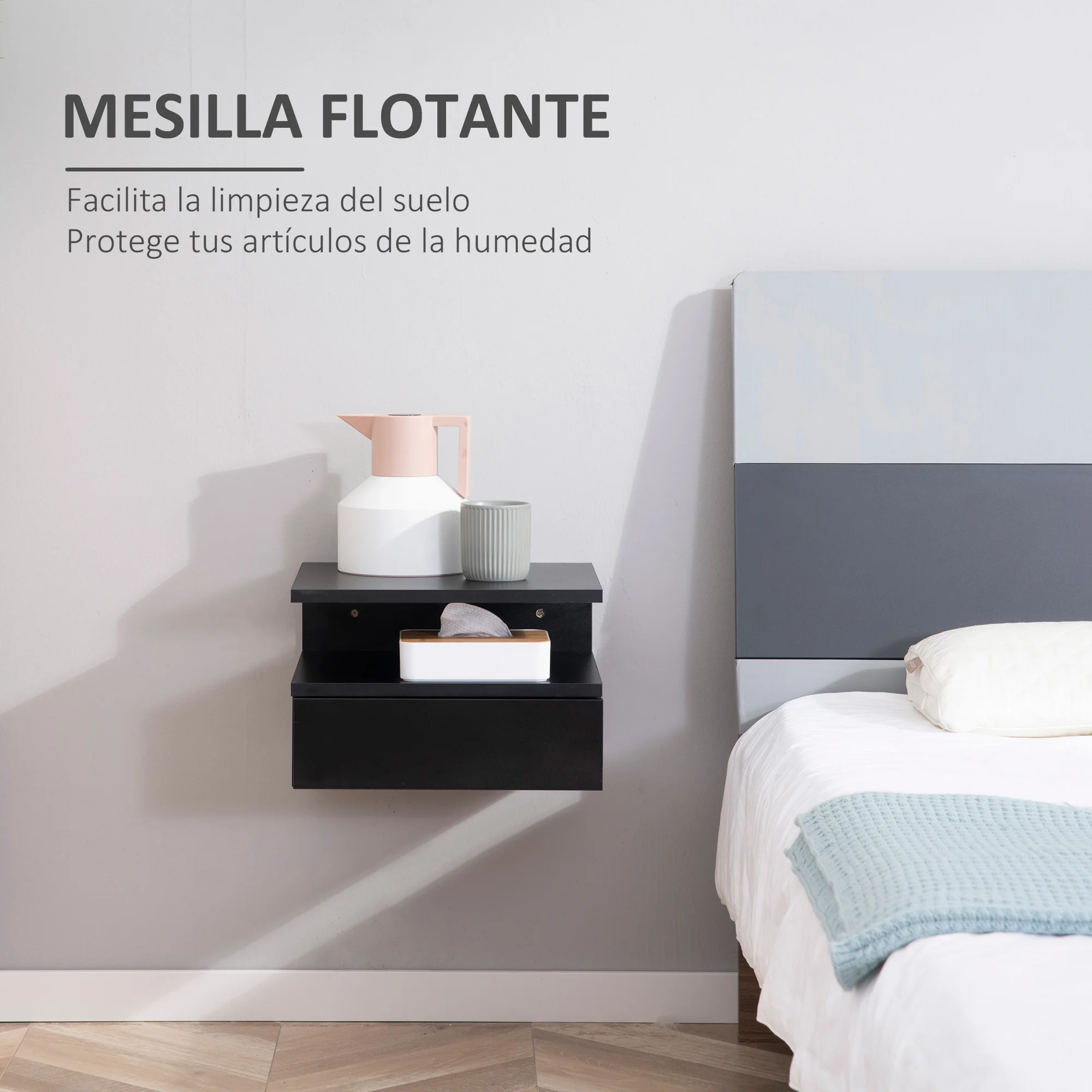 Comprar HOMCOM Set de 2 Mesitas de Noche Flotantes con 1 Cajón y Estante Abierto Diseño Moderno Montado en la Pared 35x32x22,5 cm Negro