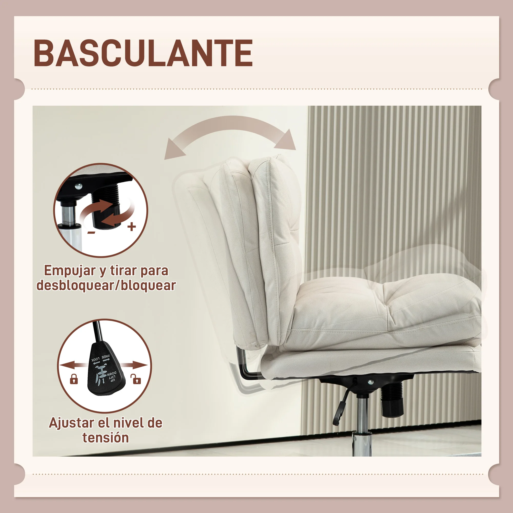 Siéntete cómodo todo el día con esta silla de oficina HOMCOM. Su diseño único y asiento amplio sin brazos te permite sentarte como prefieras. El acolchado de doble capa en algodón PP es increíblemente suave, y la tela técnica asegura que te mantengas fresco. Relájate mientras te balanceas suavemente y disfruta del asiento giratorio que te permite moverte con total libertad sin esfuerzo.