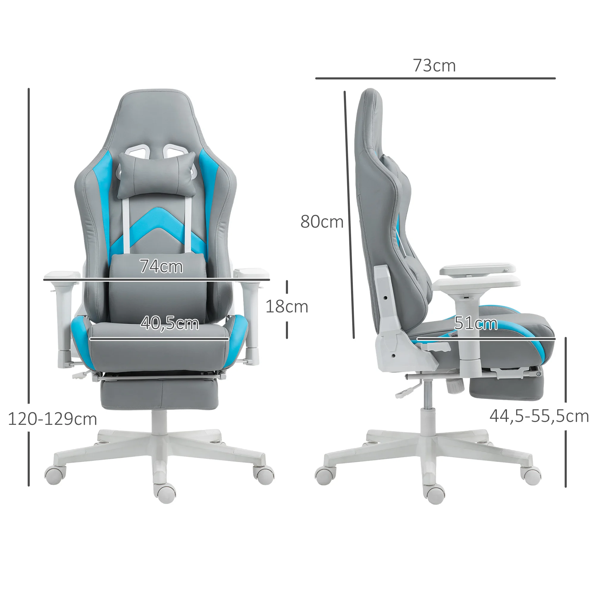 Esta silla gaming de HOMCOM es perfecta para tu área de juegos. Fabricada en material PU resistente y fácil de limpiar, incluye un soporte lumbar y un reposacabezas para mayor comodidad, además de reposabrazos ajustables en varias direcciones. Esta silla giratoria con una inclinación de hasta 150°, ofrece el confort necesario para largas horas de juego o estudio, convirtiéndose en un elemento indispensable en tu espacio de entretenimiento o trabajo.