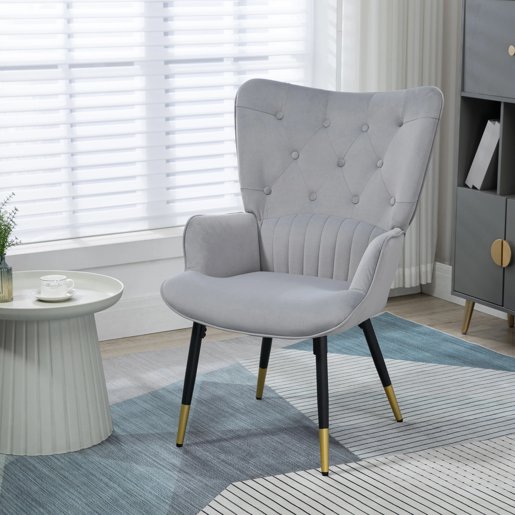 Comprar HOMCOM Sillón Individual Sillón Orejero Butaca de Salón Tapizado en Terciopelo con Respaldo Alto Reposabrazos y Patas de Acero Estilo Moderno 68x72x103 cm Rosa