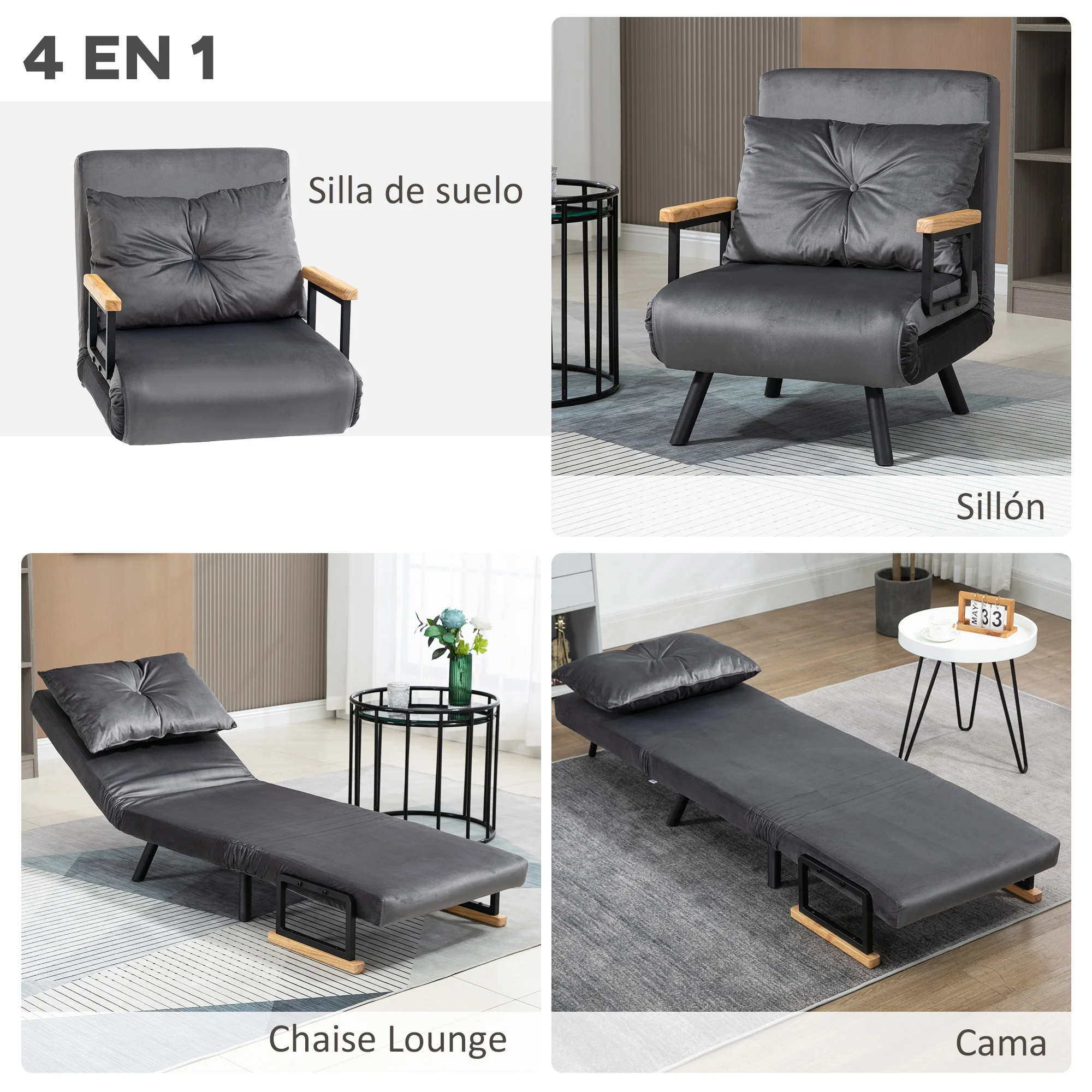 Transforma fácilmente este sillón elegante en una cómoda cama para dormir. Fabricado con una resistente estructura de acero y acolchado y tapizado en una agradable tela con tacto de terciopelo, este sofá cama de 1 plaza de HOMCOM es ideal para cualquier entorno. Además, cuenta con un respaldo reclinable en hasta 5 posiciones con un ángulo máximo de hasta 180°, para que encuentres la posición perfecta.