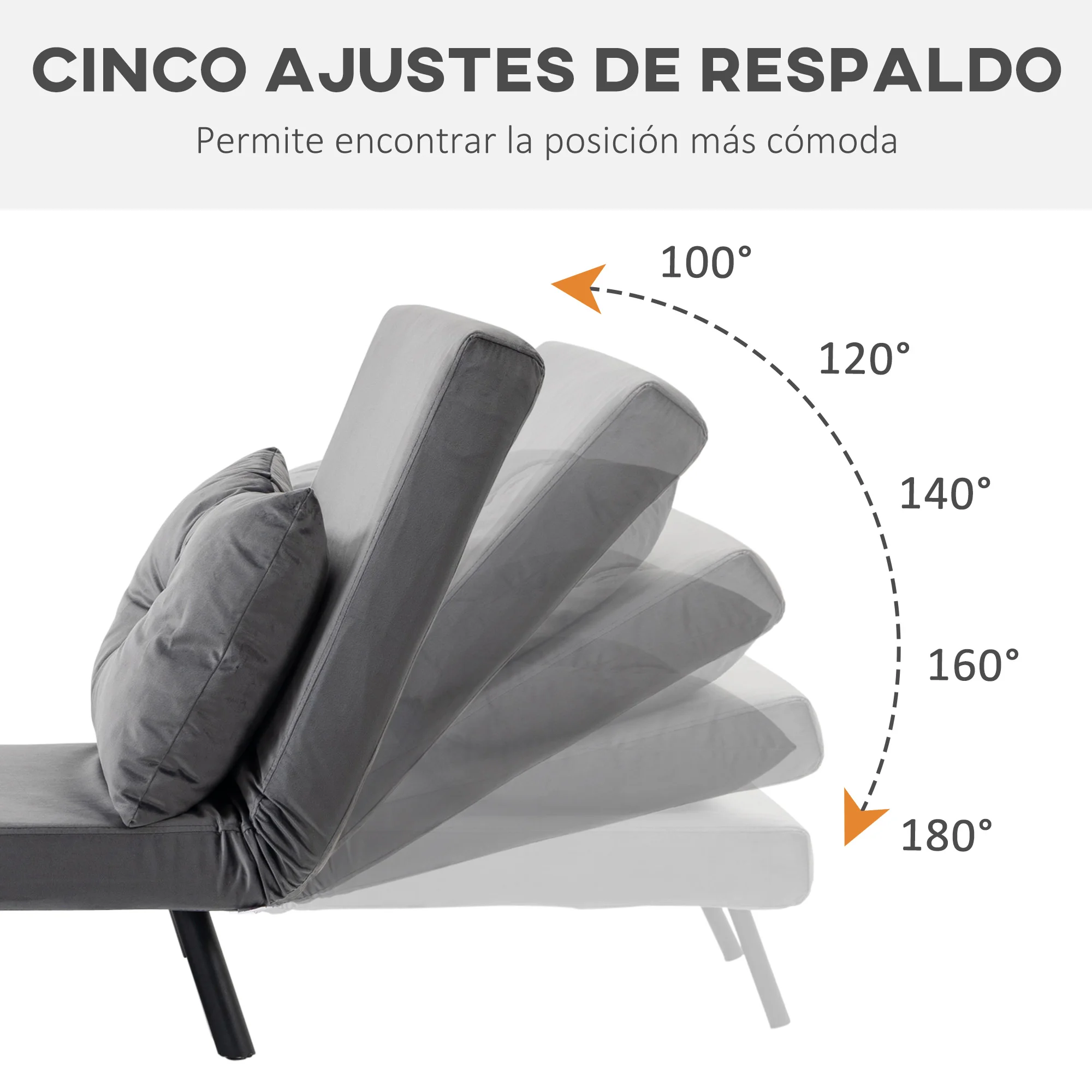 HOMCOM Sofá Cama de 1 Plaza Sofá Cama Plegable Tapizado en Terciopelo con Respaldo Ajustable de 5 Niveles y Almohada Acolchada para Oficina Dormitorio Salón 63x73x81 cm