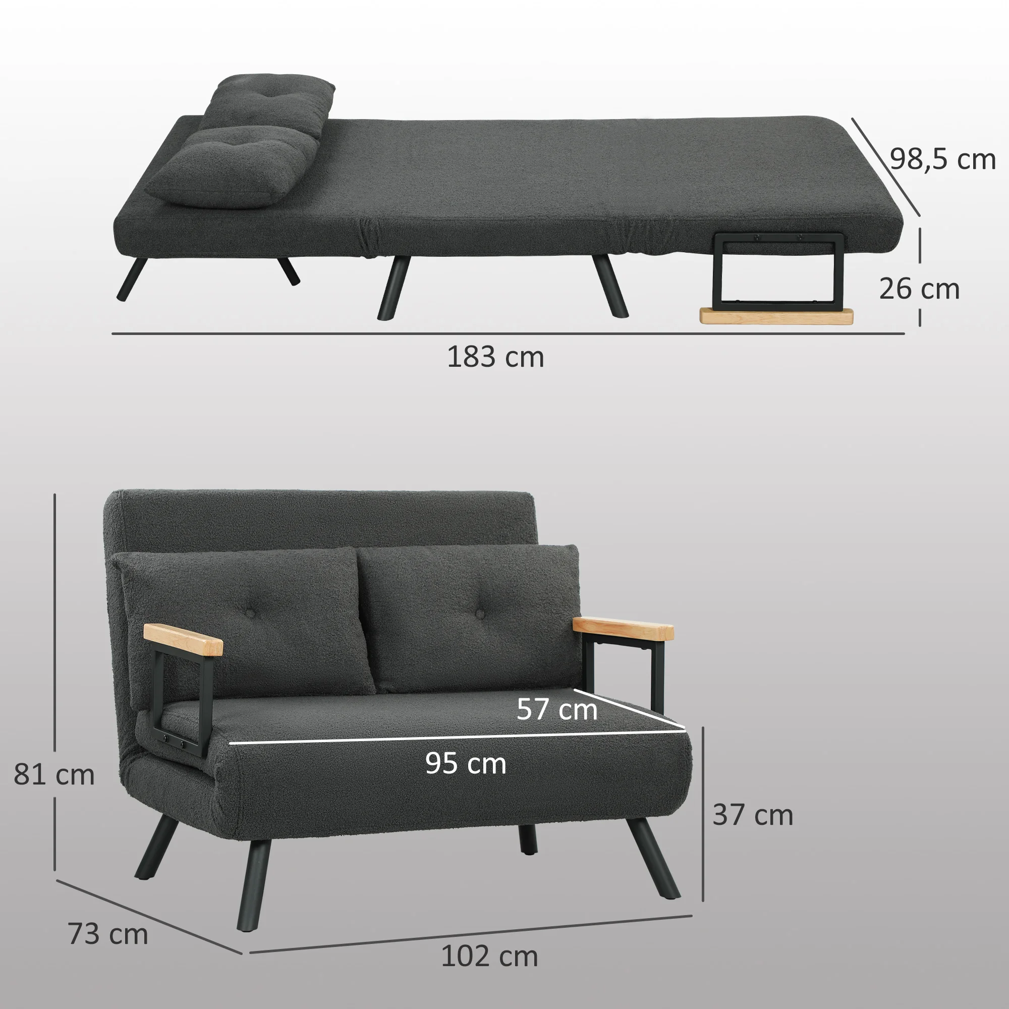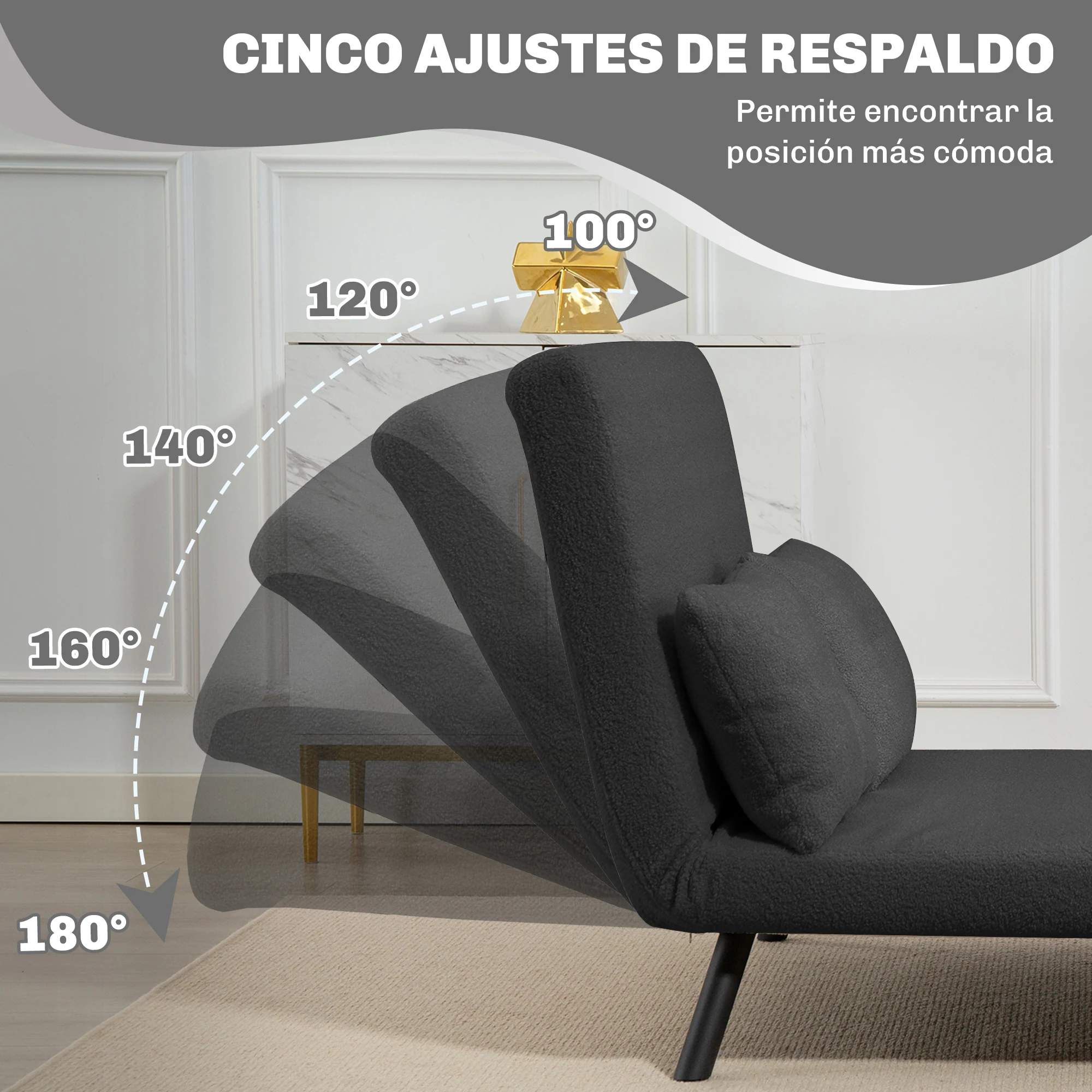 Transforma fácilmente este sillón elegante en una cómoda cama para dormir. Fabricado con una resistente estructura de acero y acolchado y tapizado en una agradable tela con tacto de borreguito, este sofá cama de 2 plazas de HOMCOM es ideal para cualquier entorno. Además, cuenta con un respaldo reclinable en hasta 5 posiciones con un ángulo máximo de hasta 180°, para que encuentres la posición perfecta.