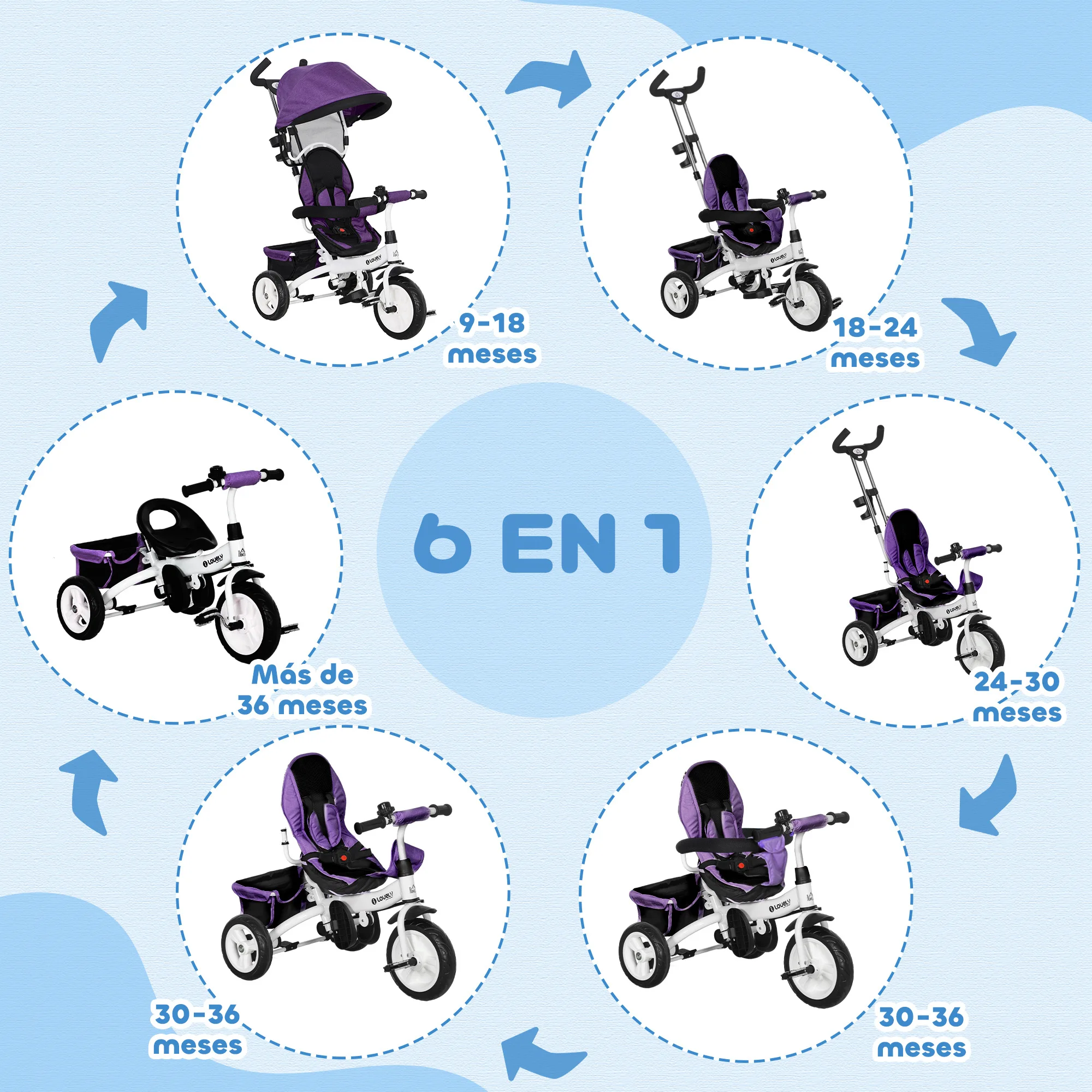 ¿Buscas un regalo funcional y que encante a tus hijos? Este triciclo multifuncional de HOMCOM seguro que va a satisfacer tus necesidades. Para pasear y acompañar a los peques asegurados su seguridad manejándolo mediante el manillar de empuje. Con rueda delantera completamente cerrada, barra protectora, cinturón de seguridad y reposapiés plegable, tus hijos pueden disfrutar con total seguridad. Este triciclo evolutivo puede ser un regalo ideal para cumpleaños de niños, Navidad o fiestas.