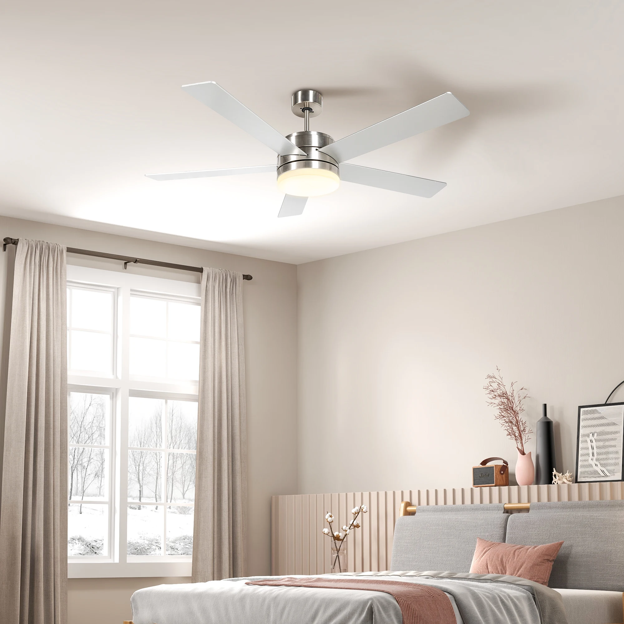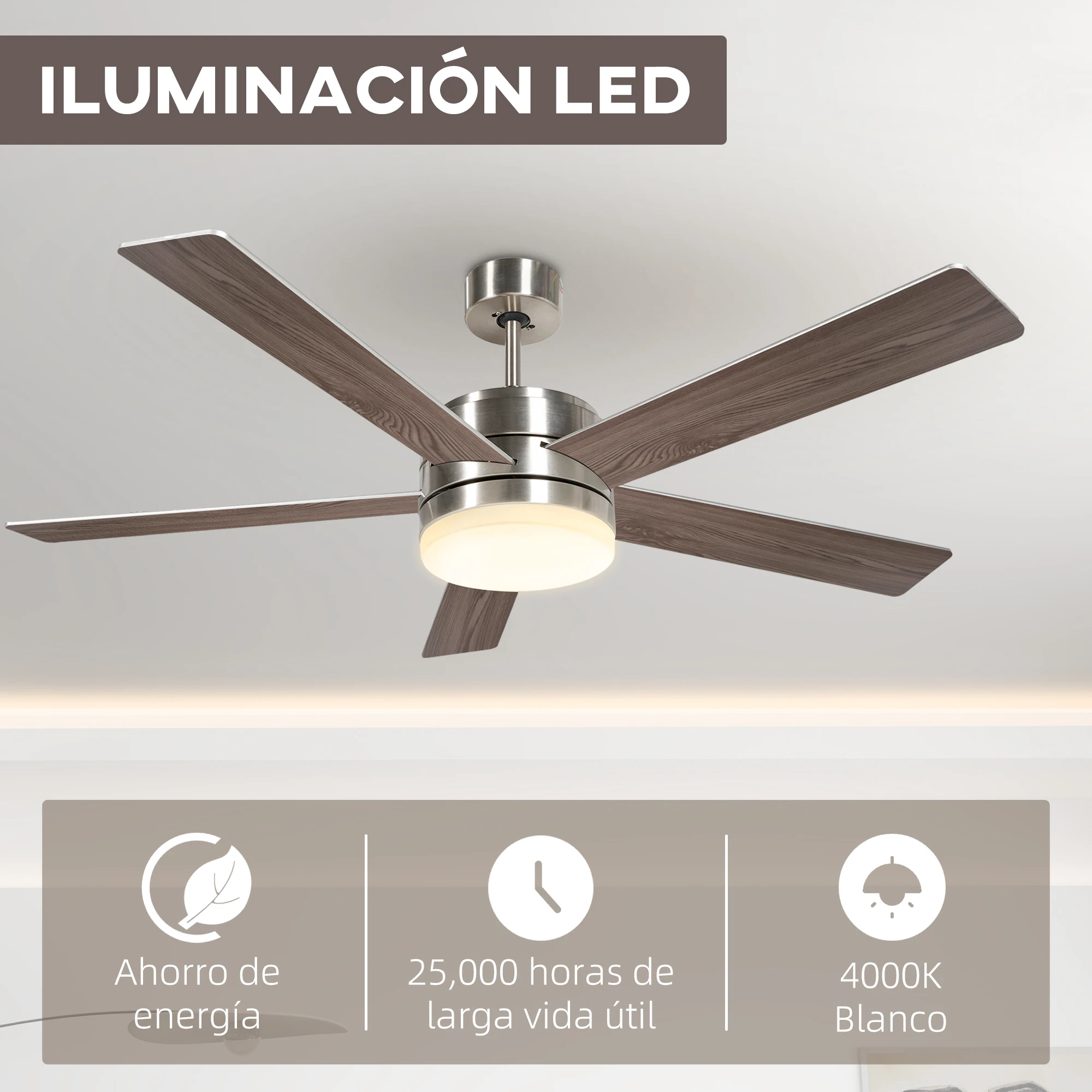 Comprar HOMCOM Ventilador de Techo con Luz LED 46W Ventilador de Techo Silencioso Ø132 cm con Motor Reversible 5 Aspas Reversibles Control Remoto 6 Velocidades para Dormitorio Efecto 15~20 m² Haya