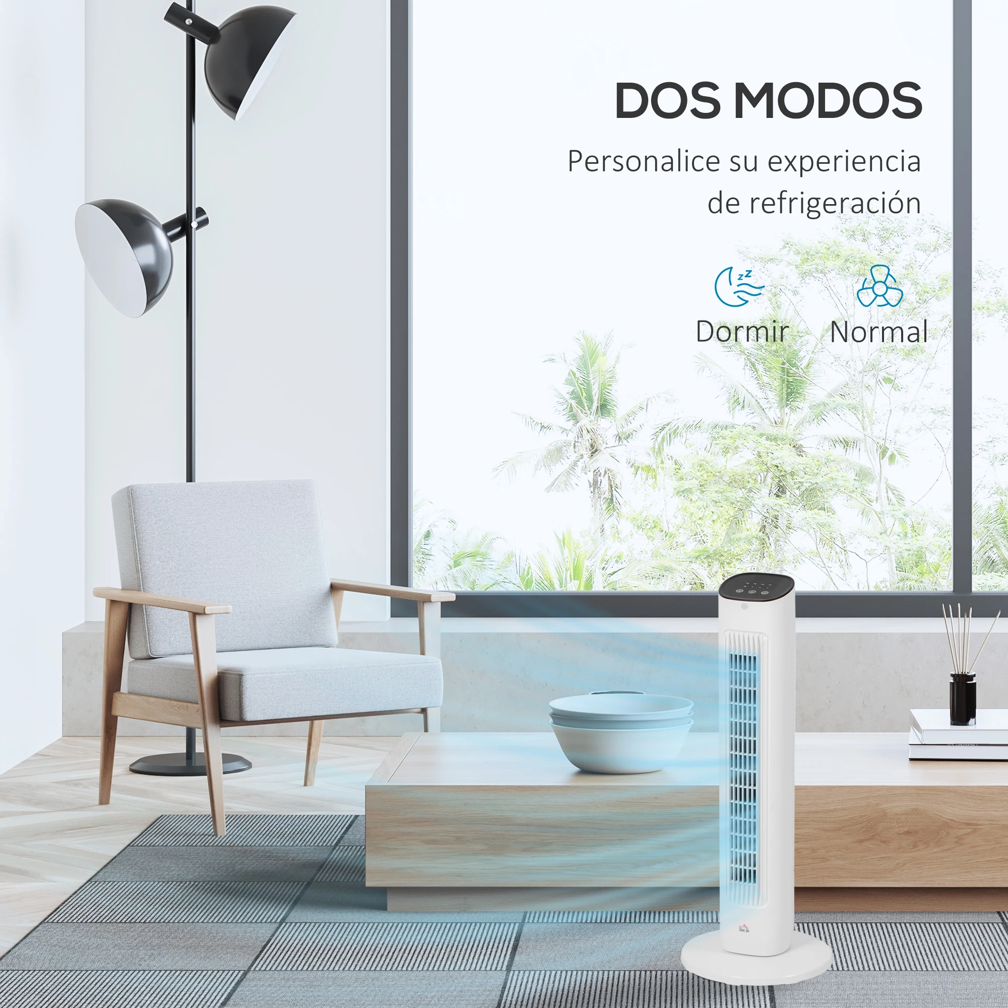Olvídate del calor del verano con este ventilador de torre con control remoto de HOMCOM. Este ventilador es el complemento perfecto para tu oficina, hogar o estudio. Tiene 3 velocidades y 2 modos de funcionamiento para satisfacer tus diferentes necesidades. Además, tiene una función de oscilación de 85° y un temporizador de hasta 15 horas. Configúralo siempre a tu gusto usando la pantalla LED o el control remoto a distancia ¿A qué esperas para refrescar tu hogar este verano?