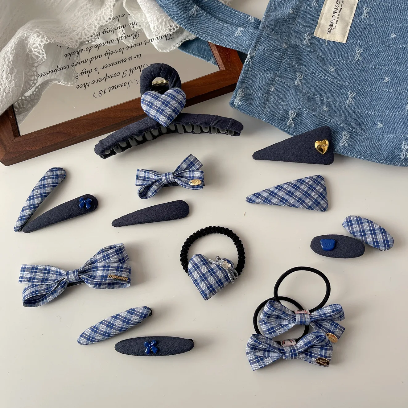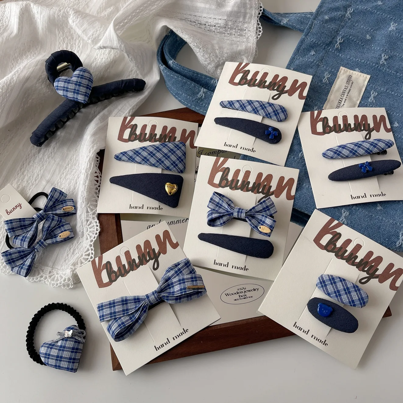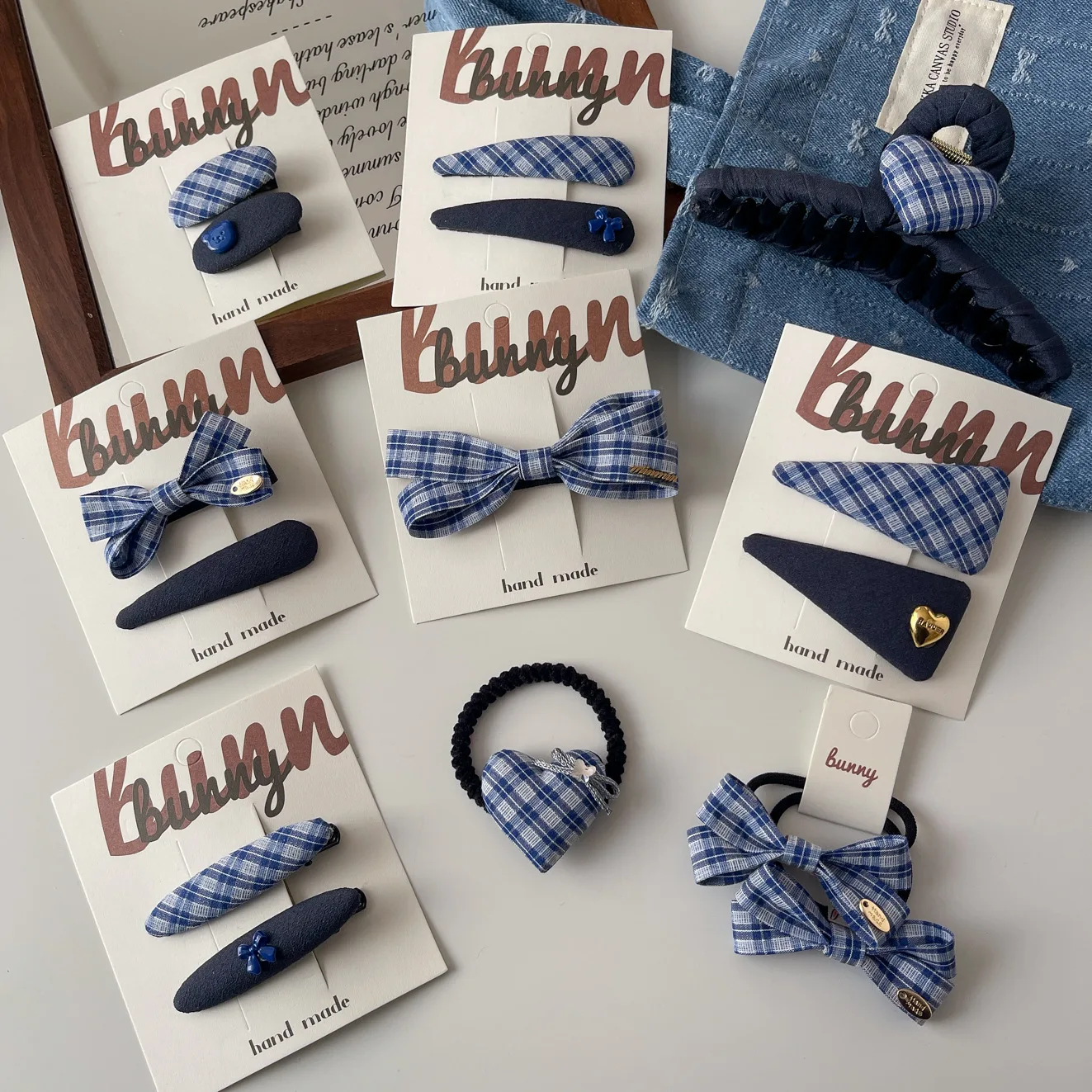 Horquilla a cuadros azul, diadema con lazo, temperamento elegante, línea de cabello, Clip de agarre de amor, accesorios para el cabello para niñas y mujeres