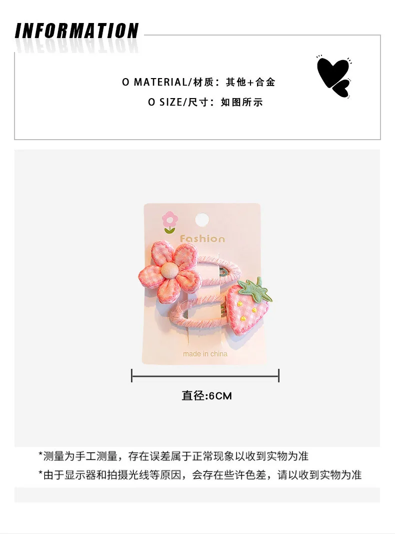 Horquilla de flores y fresas para bebé, Clip BB con flequillo, tarjeta rota, gorros bonitos de dibujos animados para niños, accesorios para el cabello para niñas y niños