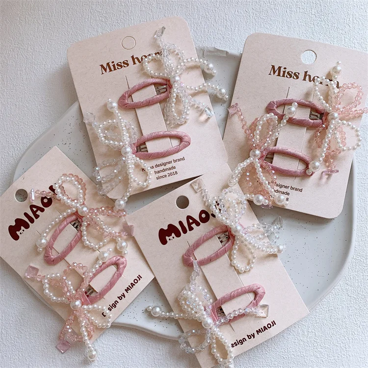 Horquilla con lazo de perlas pequeñas y frescas para niños, Clip BB de pelo roto lateral de Color sólido para niñas, Clip de flequillo para padres e hijos, primavera y verano