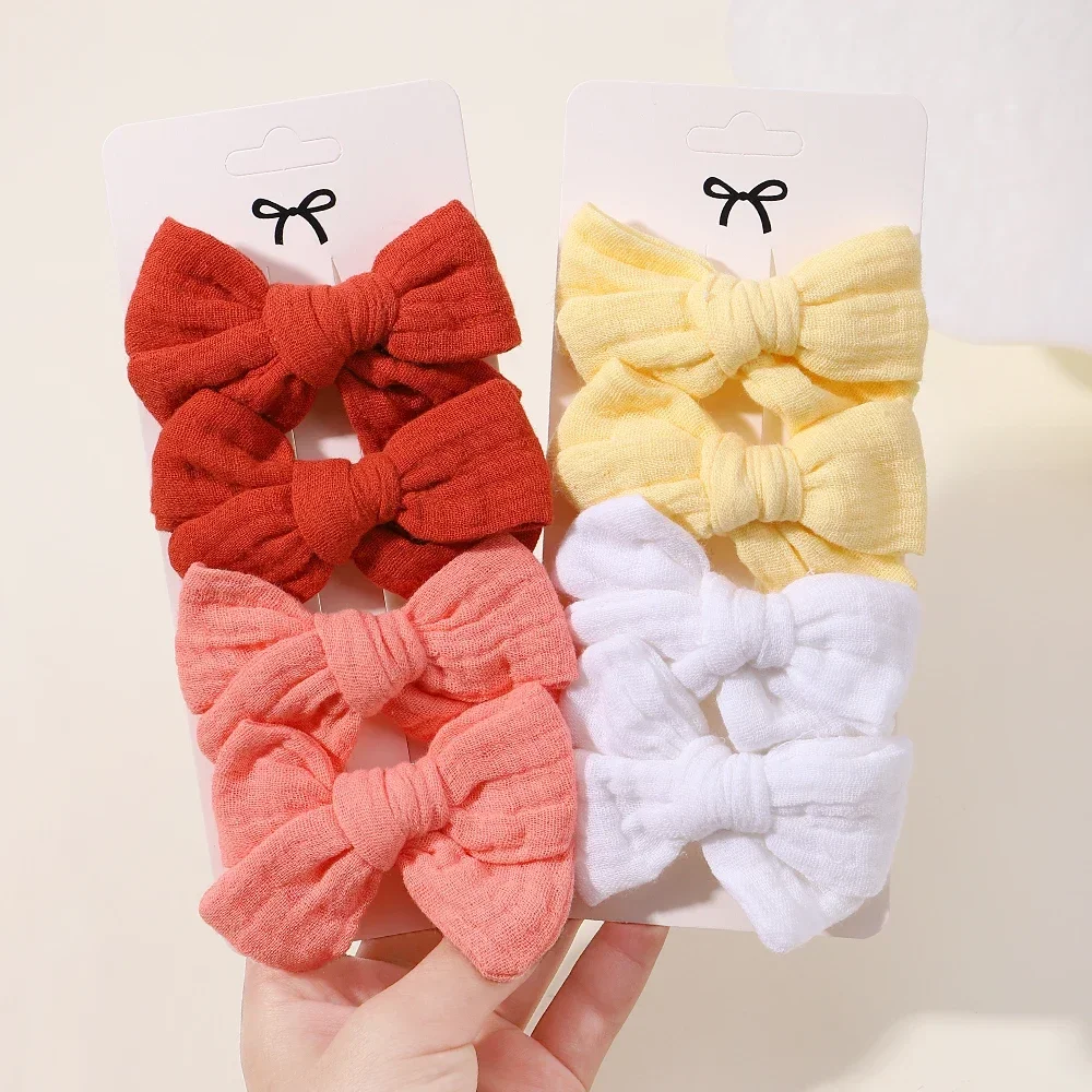 Comprar Horquillas de algodón para niña, horquillas suaves con lazo, Clips encantadores, accesorios para el cabello de Boutique, 4 unidades por juego