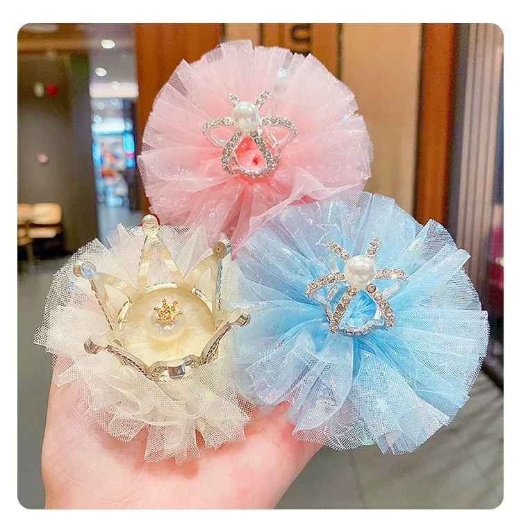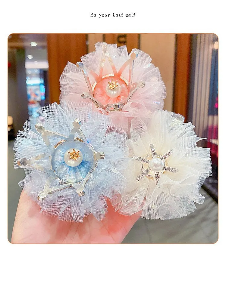 Horquillas de corona de malla para niñas, tocado con pinza para el pelo de corona para niños, no daña el cabello, accesorios para el cabello para niñas, regalo de cumpleaños