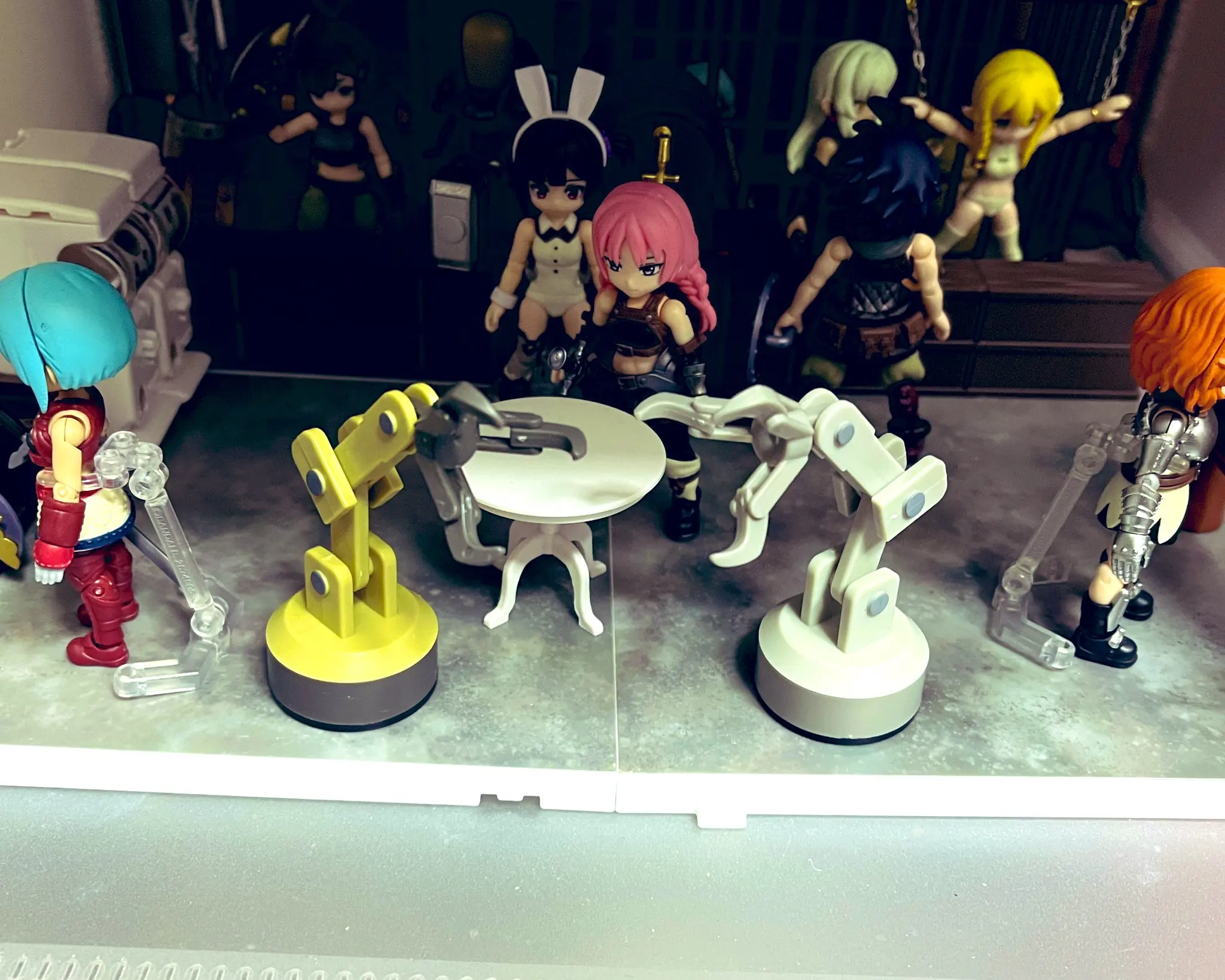 HOTLINE-juguetes de cápsula, brazo de Robot genial, mascota, base magnética, articulaciones giratorias, host móvil, clip de notas para nevera, figuras de ensamblaje en miniatura