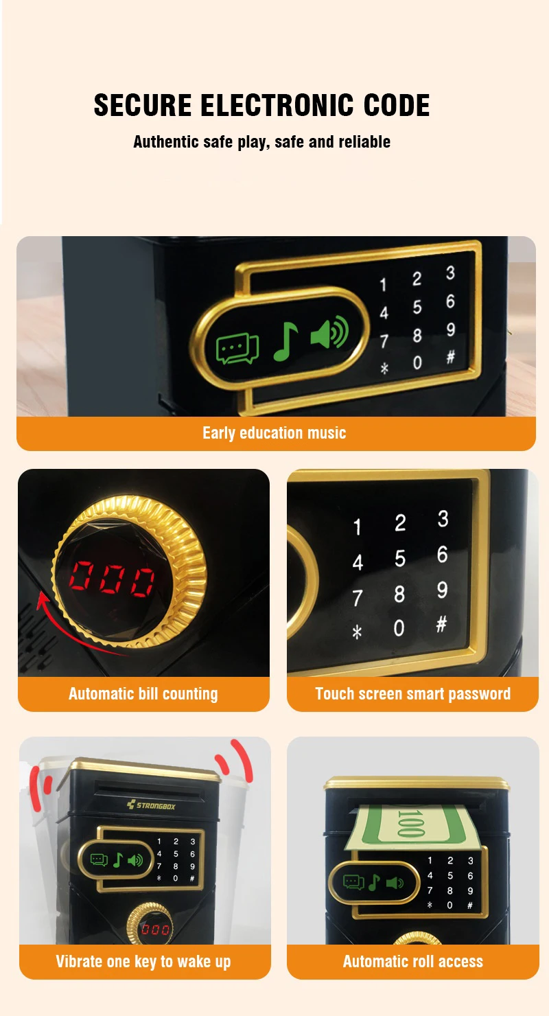 Pantalla electrónica, activación por vibración, contraseña electrónica, operación de pantalla táctil, conteo automático de monedas, cantidad de registro manual de monedas, Rollo automático de monedas, patrón de iluminación,